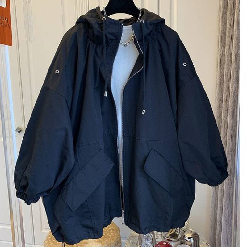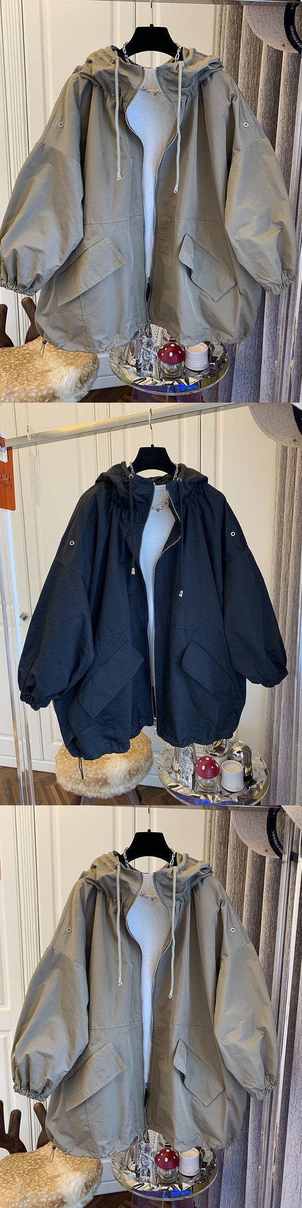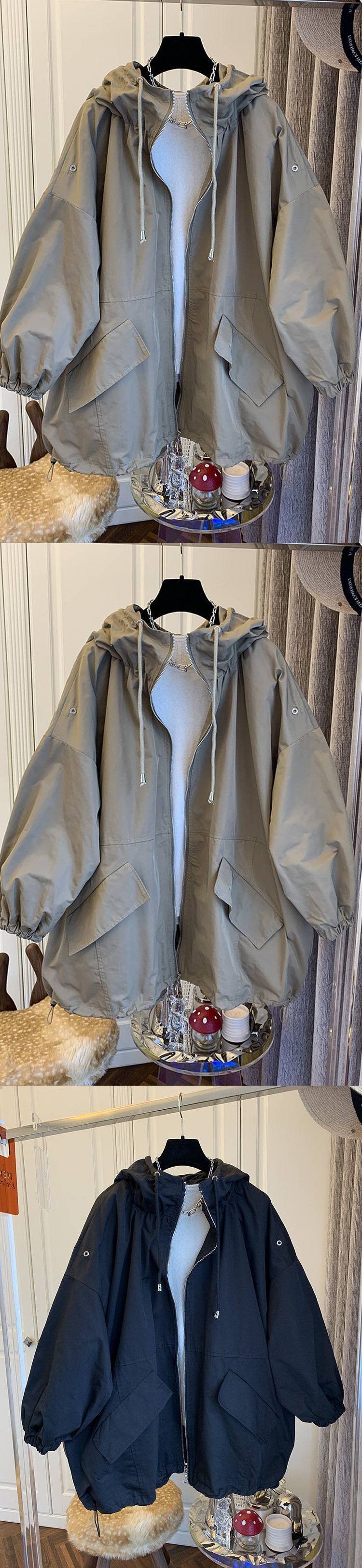 플러스 사이즈 여성 프록 여성 디자인 센스 틈새 느슨한 캐주얼 후드 코트 여성 봄 및 봄 코트스토어 가기