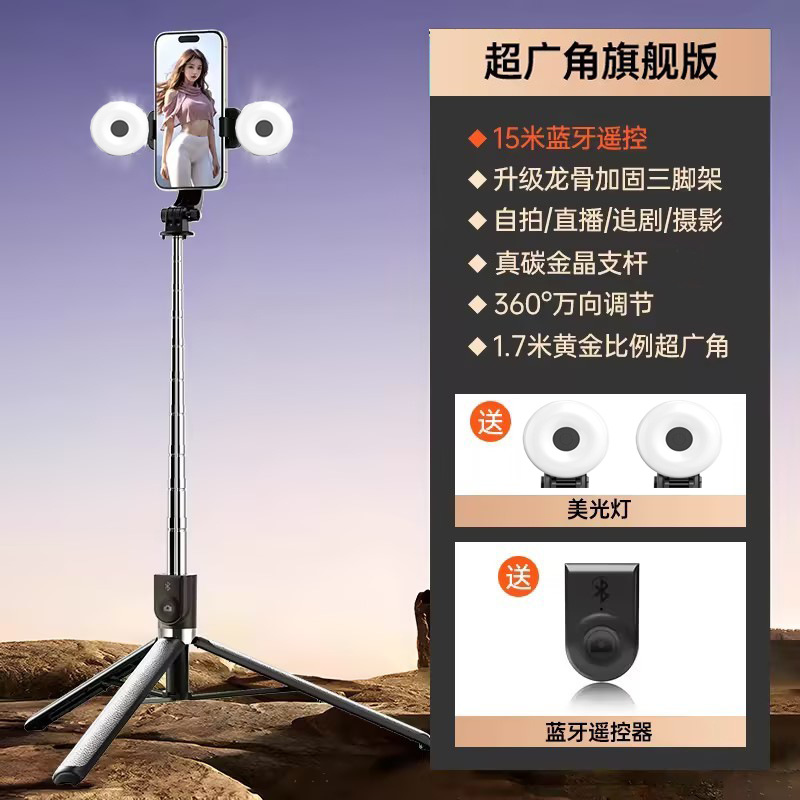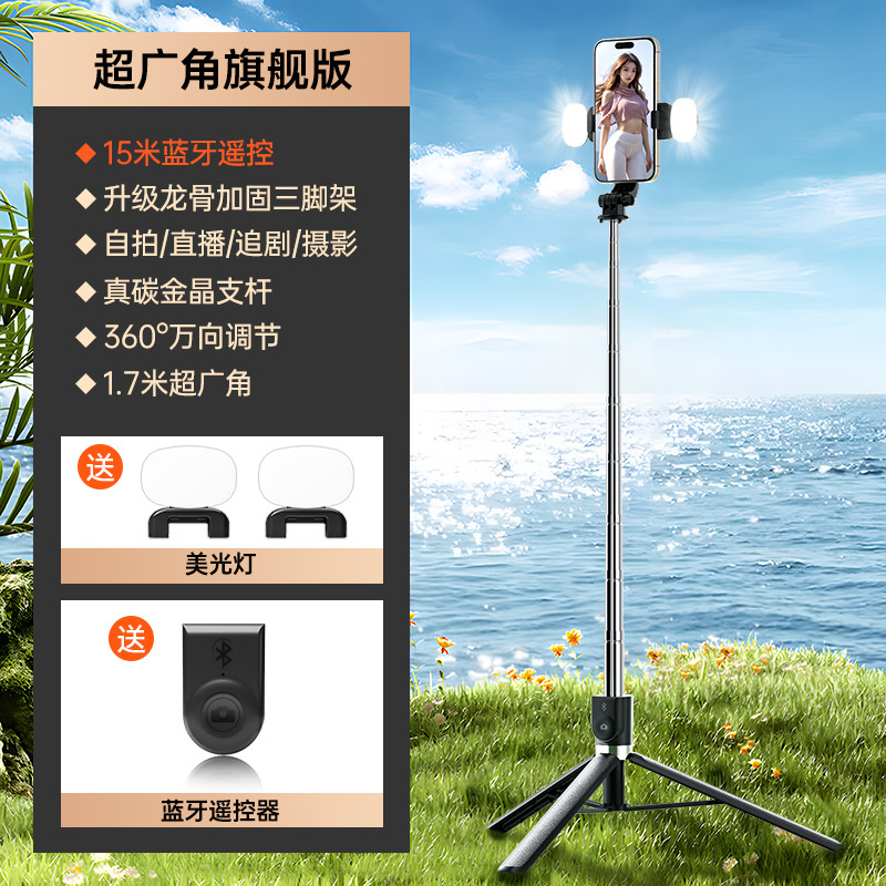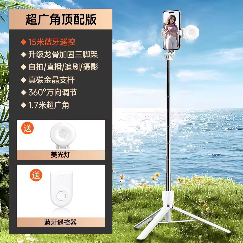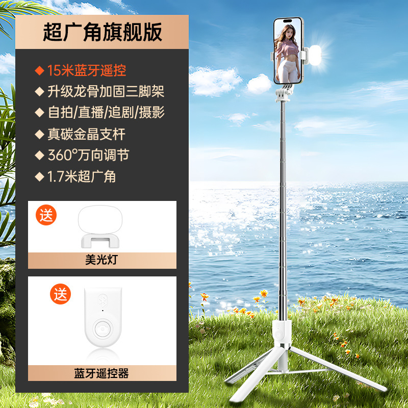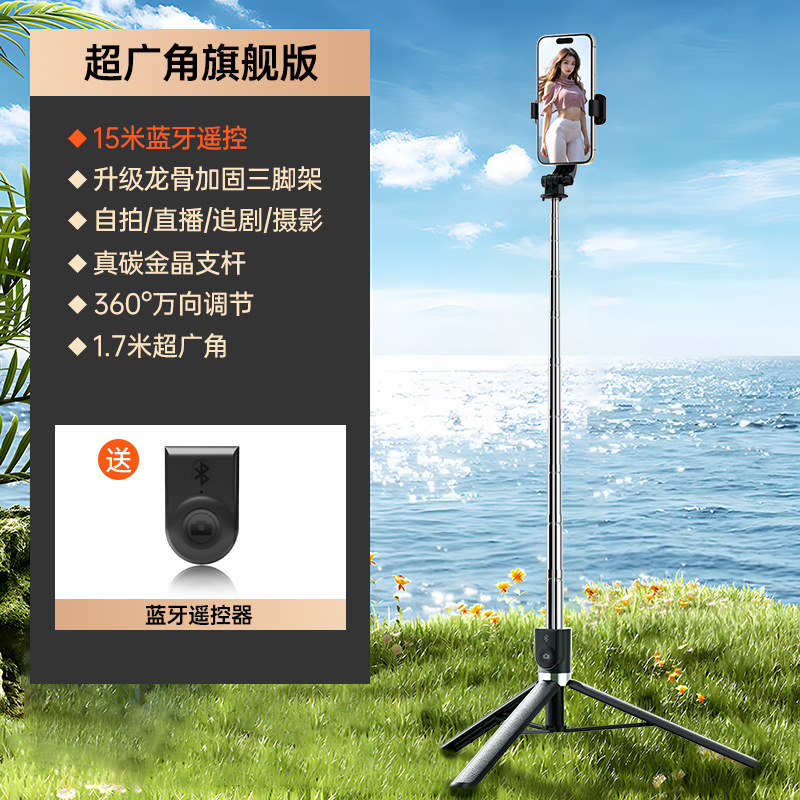 1.7 미터 범용 확장 블루투스 휴대 전화 셀카 스틱 삼각대 보편적 인 라이브 방송 브래킷 제조 업체 재고 도매