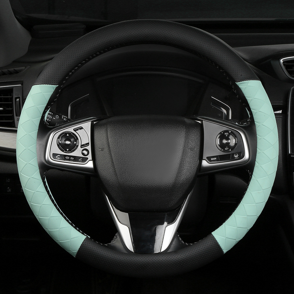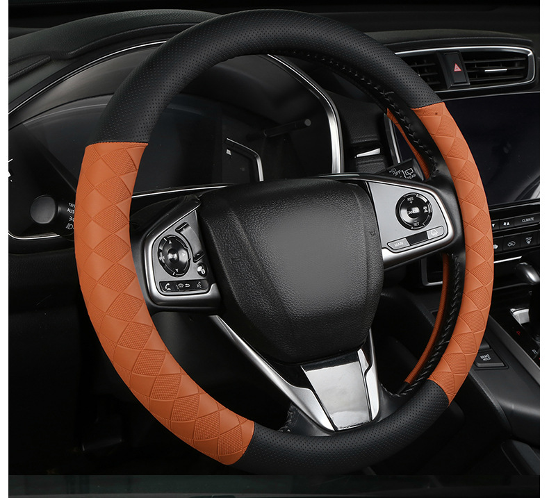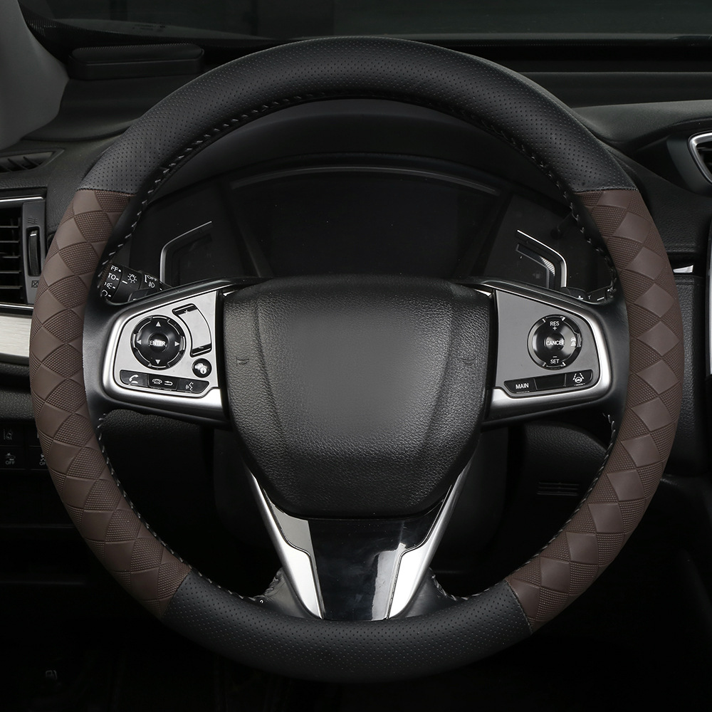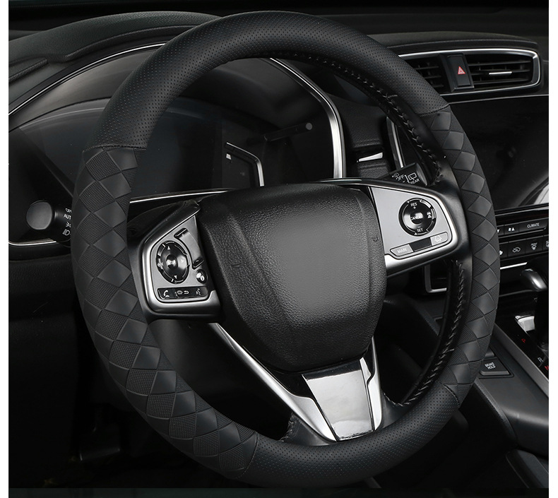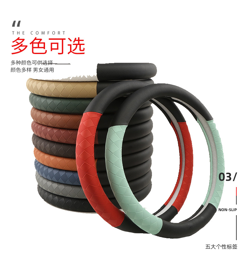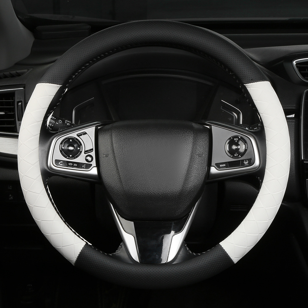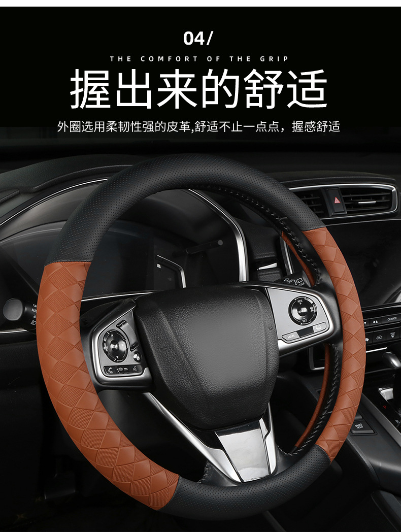 아마존 자동차 스티어링 휠 커버 간단한 스포츠 얇은 나파 가죽 라운드 카 핸들 커버 미끄럼 방지 땀 흡수성 통기성스토어 가기