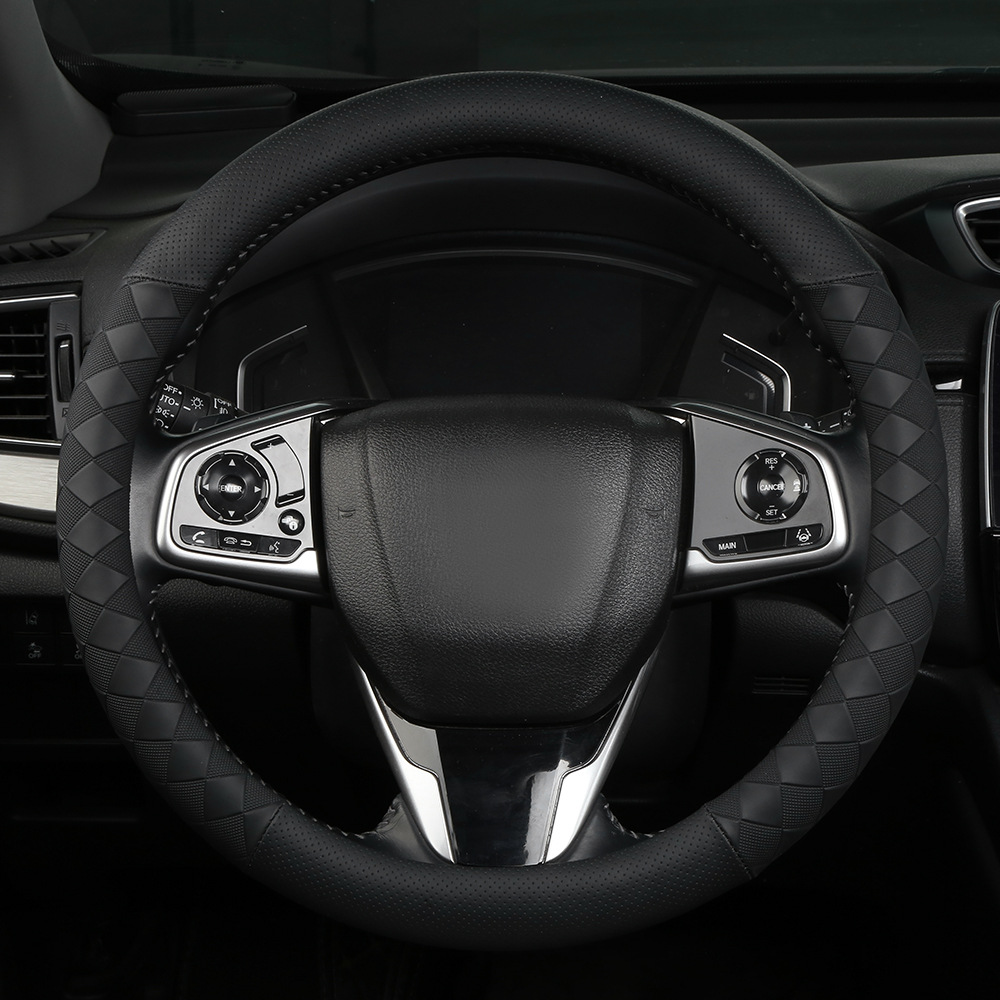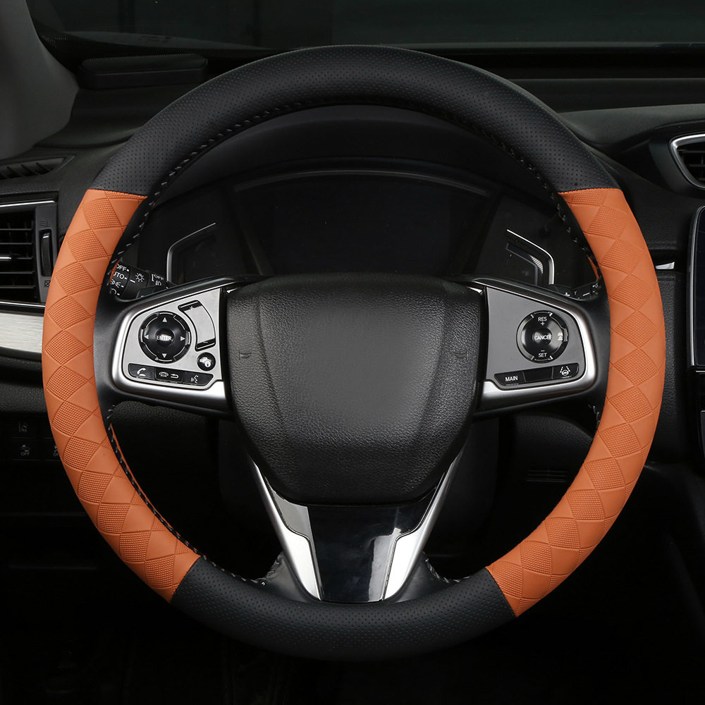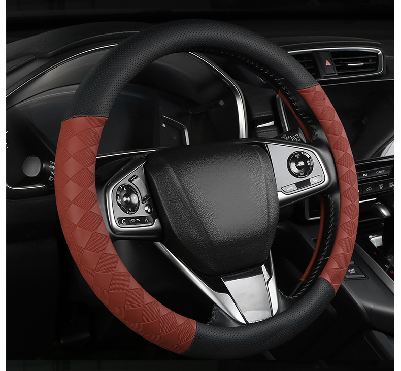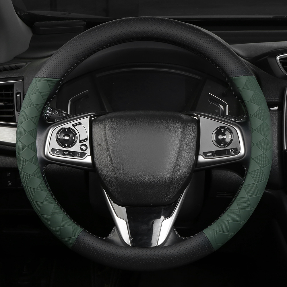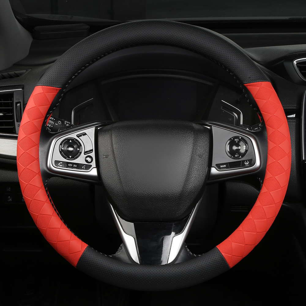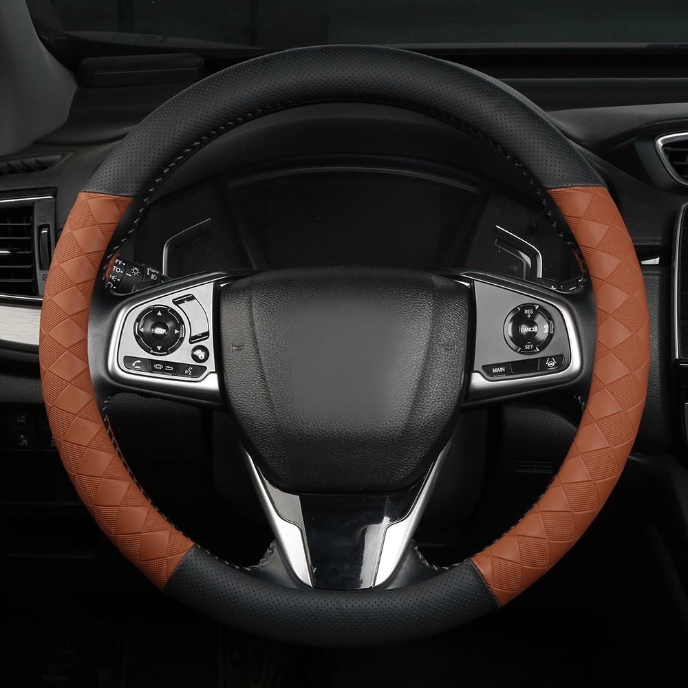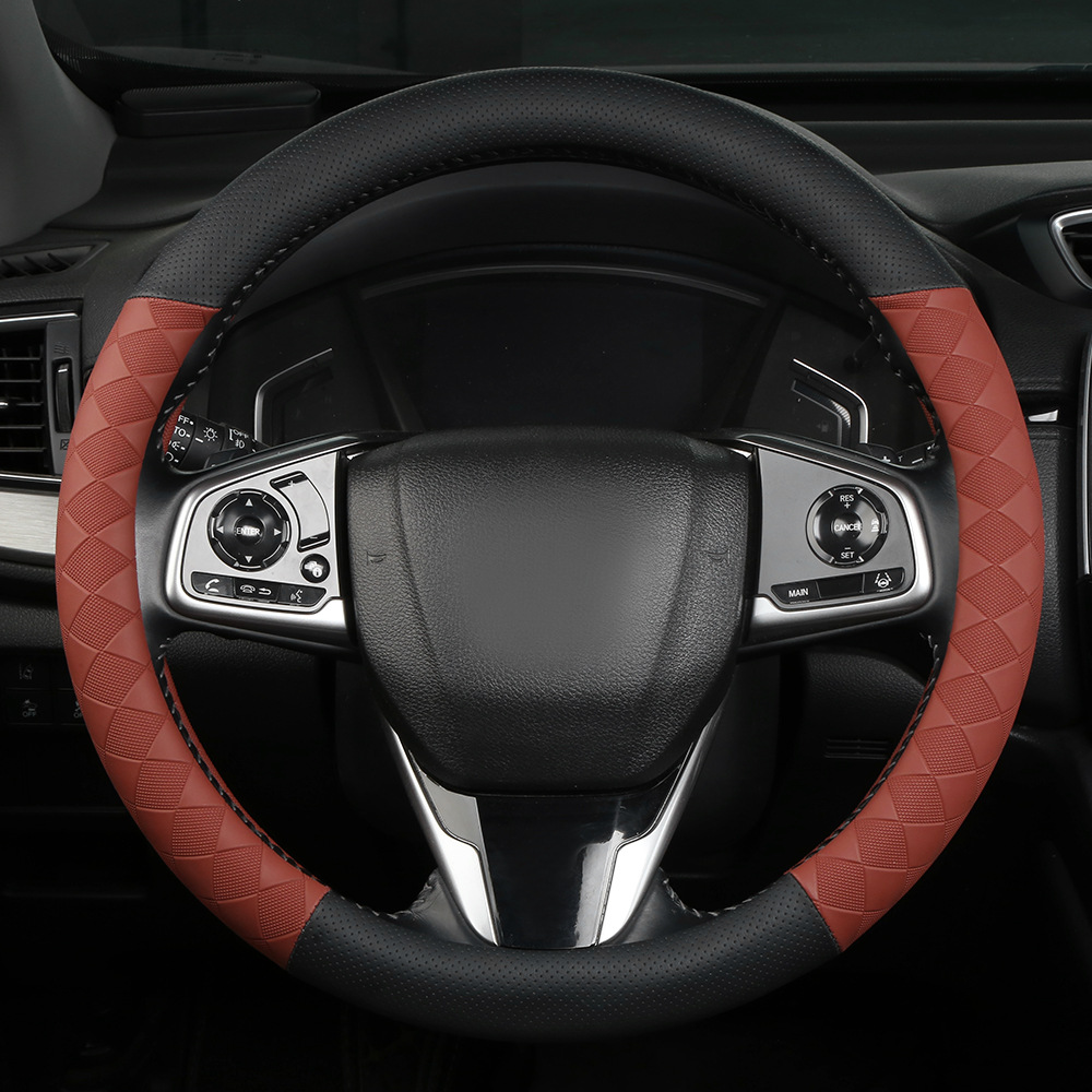 아마존 자동차 스티어링 휠 커버 간단한 스포츠 얇은 나파 가죽 라운드 카 핸들 커버 미끄럼 방지 땀 흡수성 통기성스토어 가기