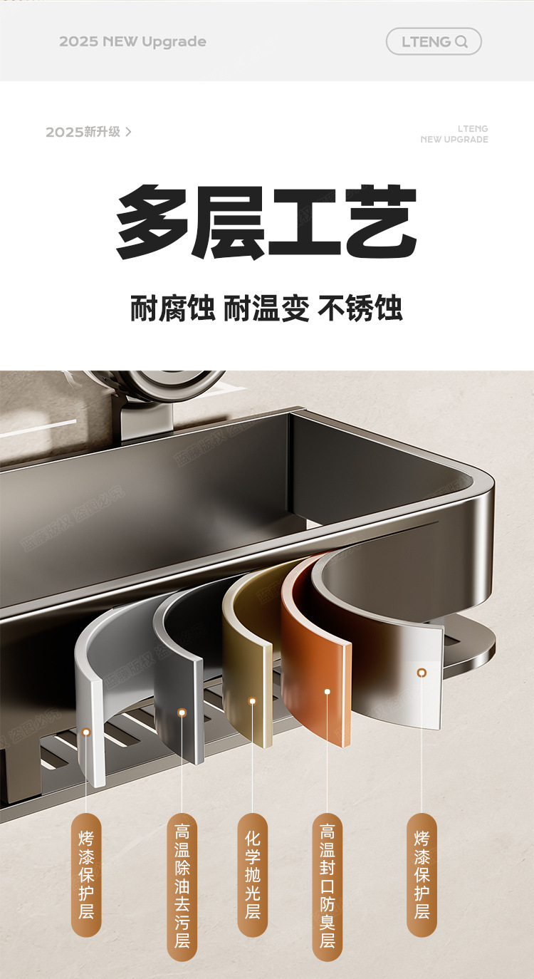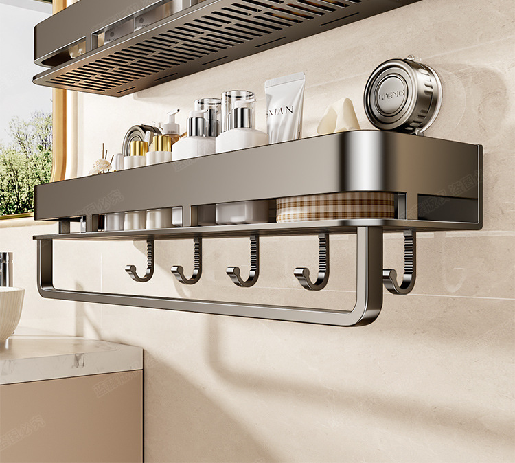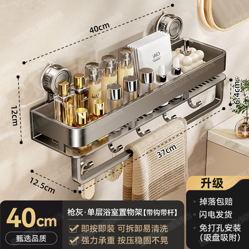 • 후크와 막대가 있는 건 그레이 단층 욕실 선반 30