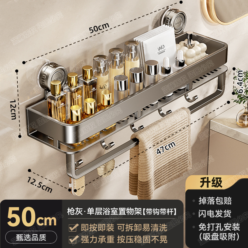 • 후크와 막대가 있는 건 그레이 단일 레이어 욕실 선반 50