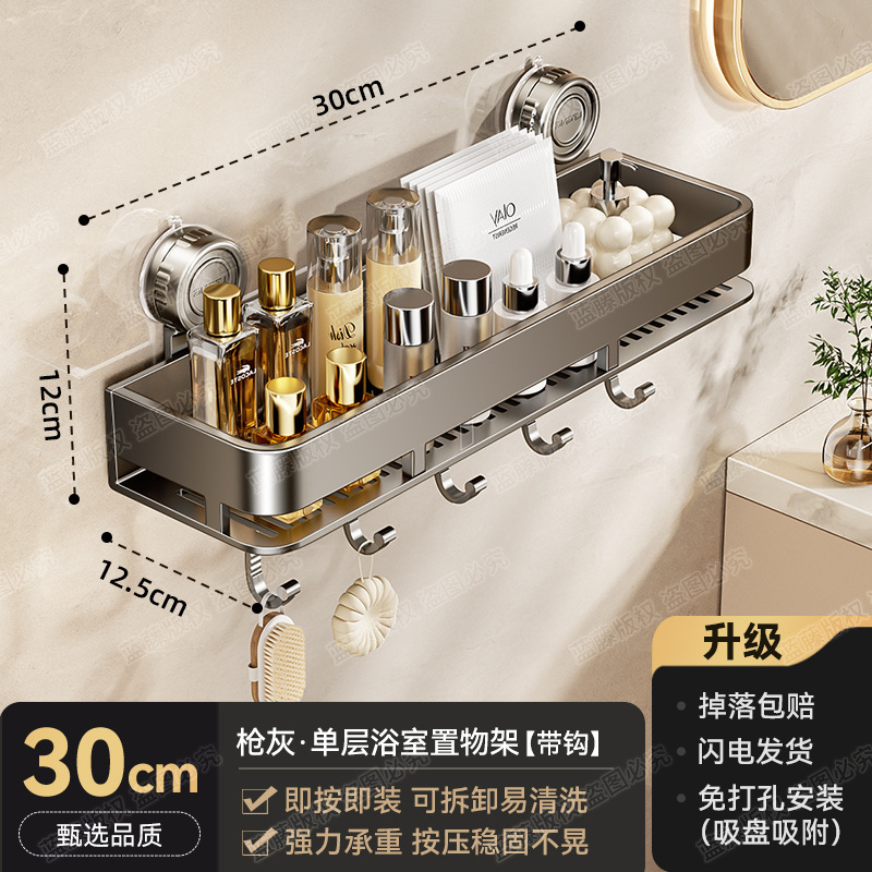 • 후크가 있는 건 그레이 단층 욕실 선반 30