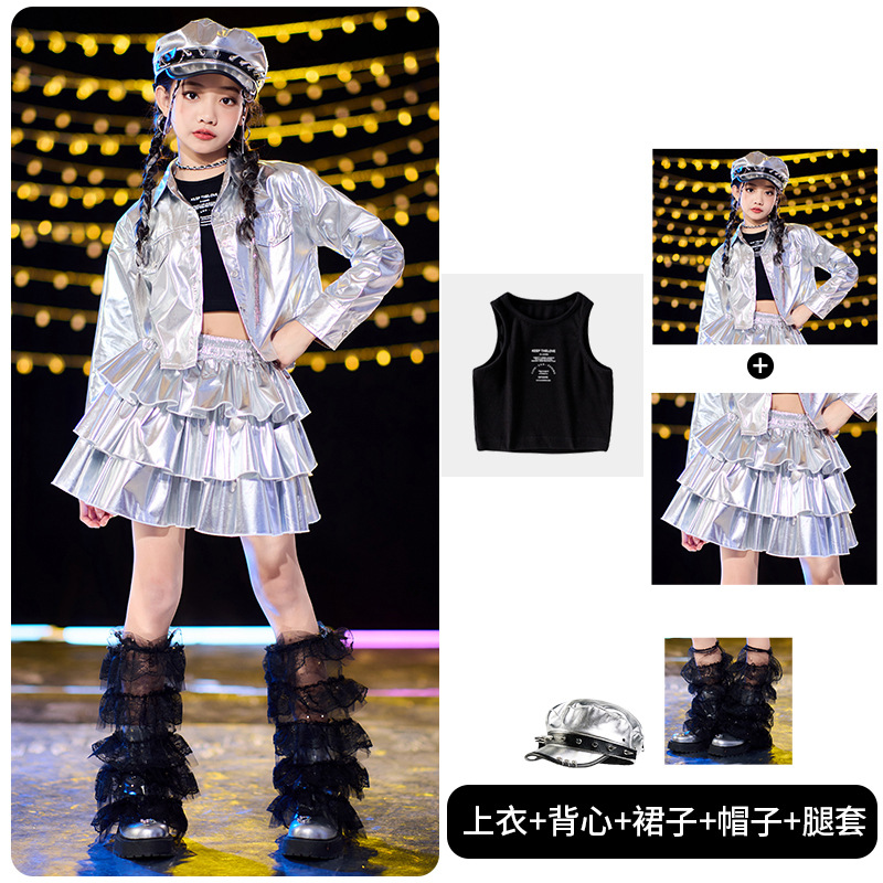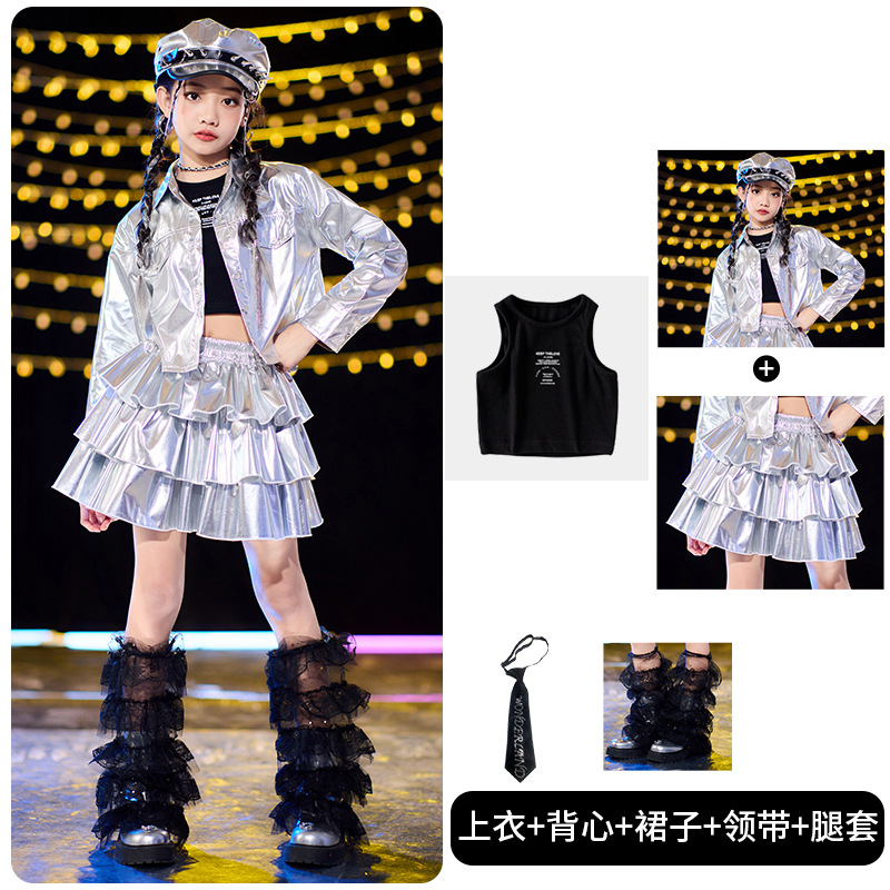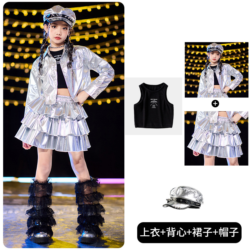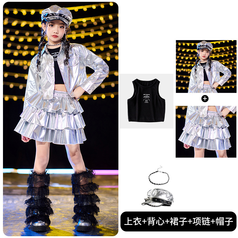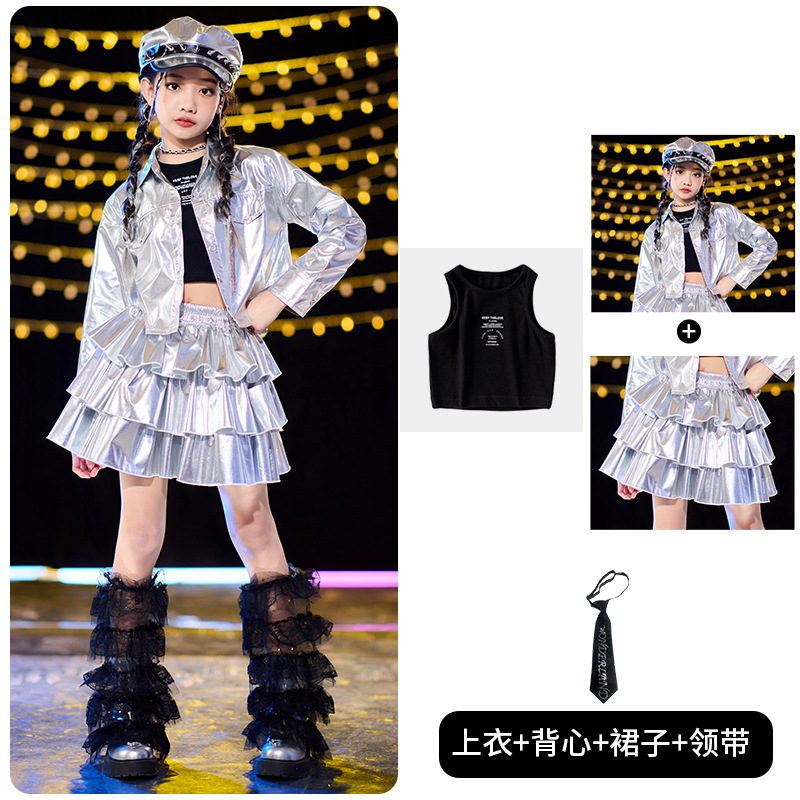힙합 어린이 패션 의류 멋진 잘 생긴 실버 밝은 컬러 퍼포먼스 의류 남자 Hiphop 재즈 댄스 힙합 루즈 드럼 세트