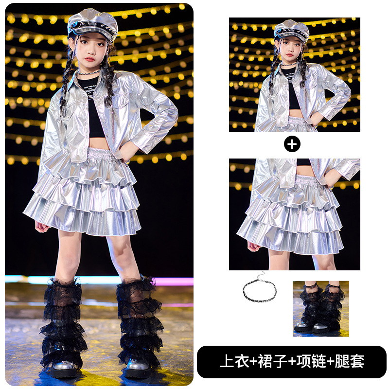 • 7155 실버 재킷 + 7156 실버 플리츠 스커트 + 블랙 레이스 레그 워머
