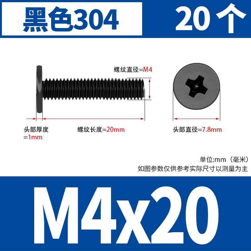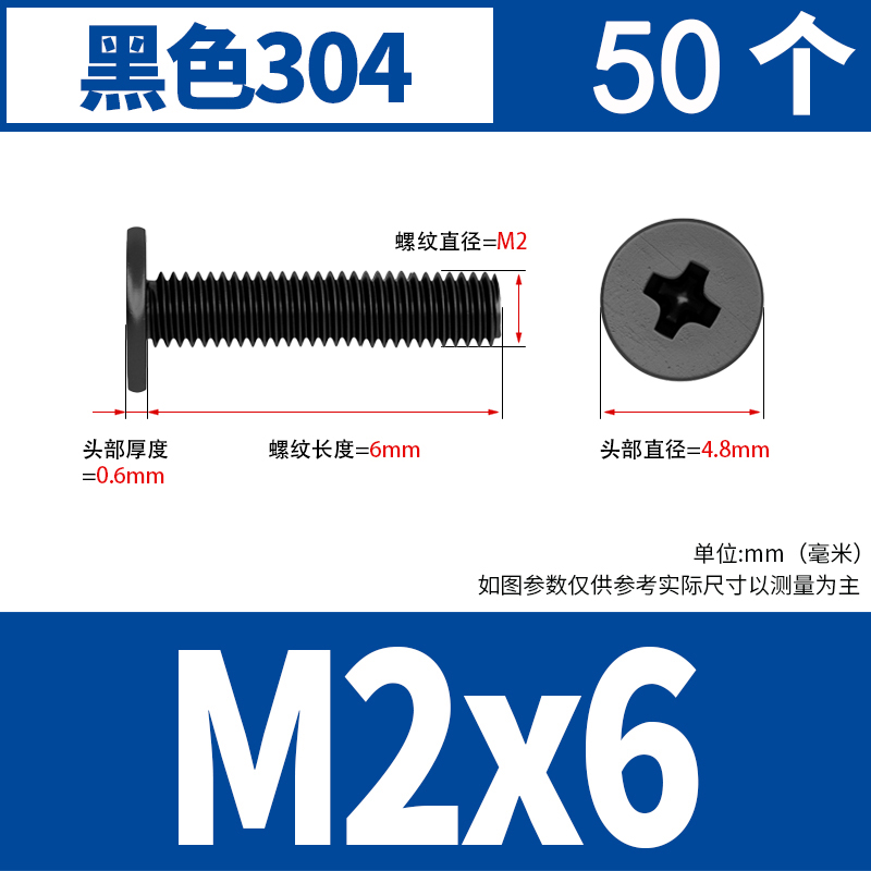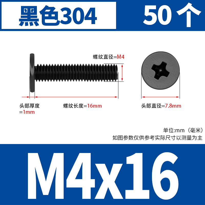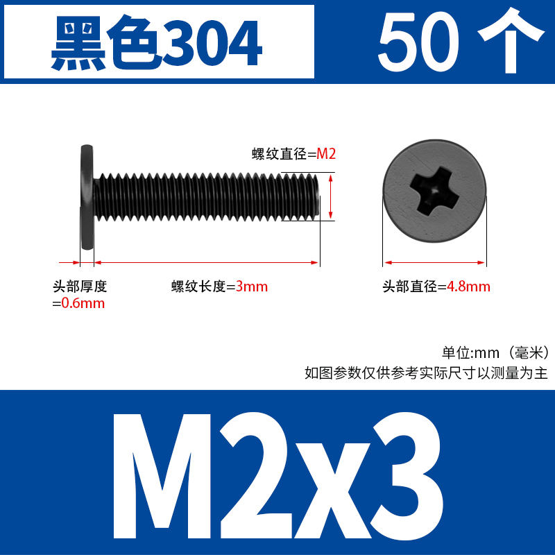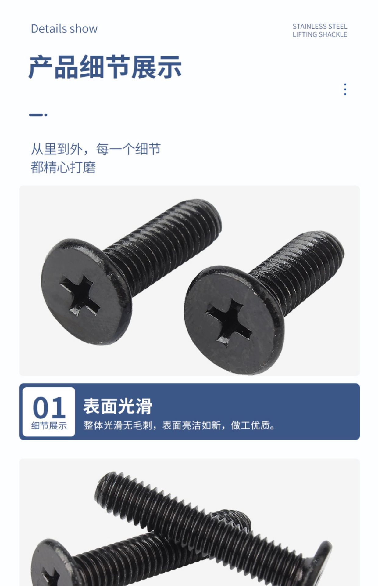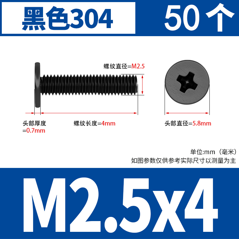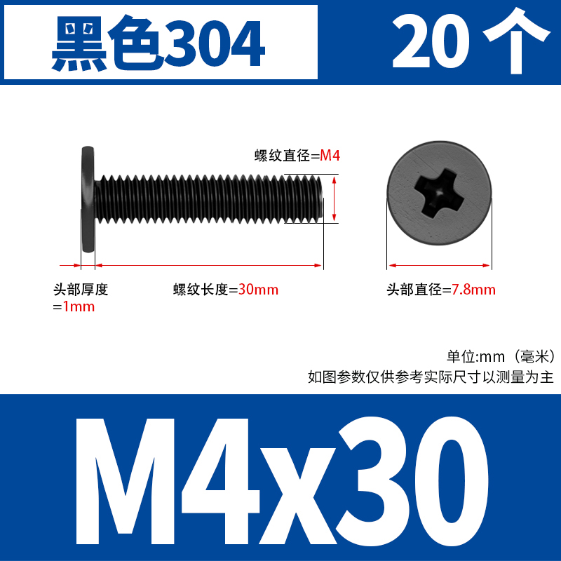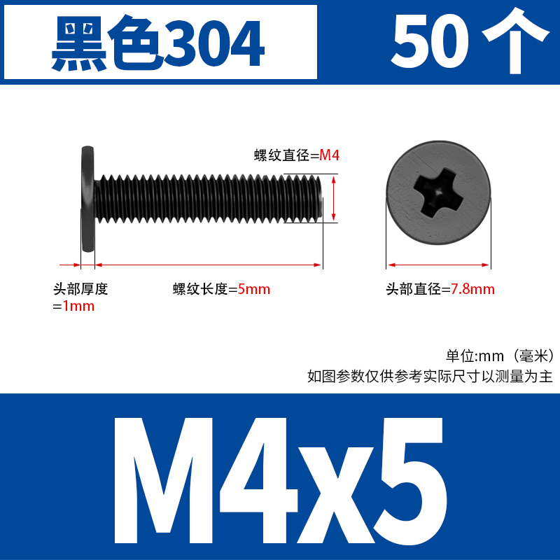 304 스테인레스 스틸 블랙 크로스 플랫 헤드 스크류 CM 대형 플랫 헤드 얇은 헤드 컴퓨터 스크류 M2M3M4M5M6