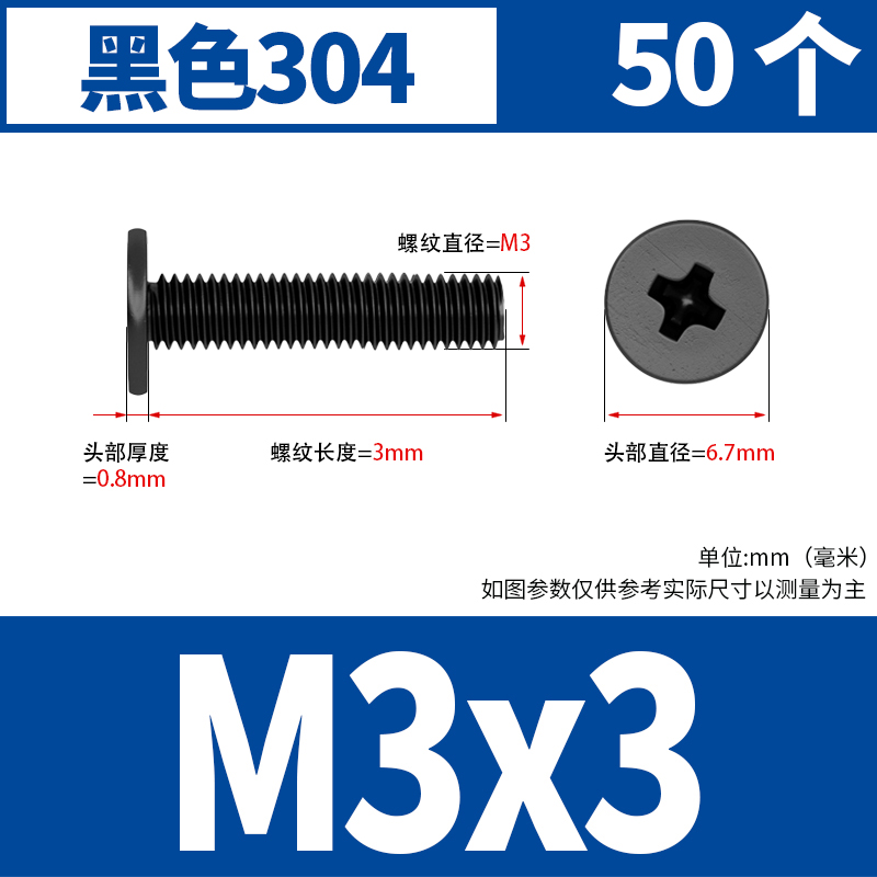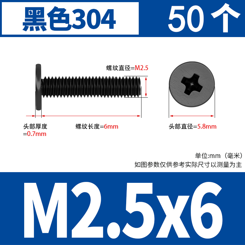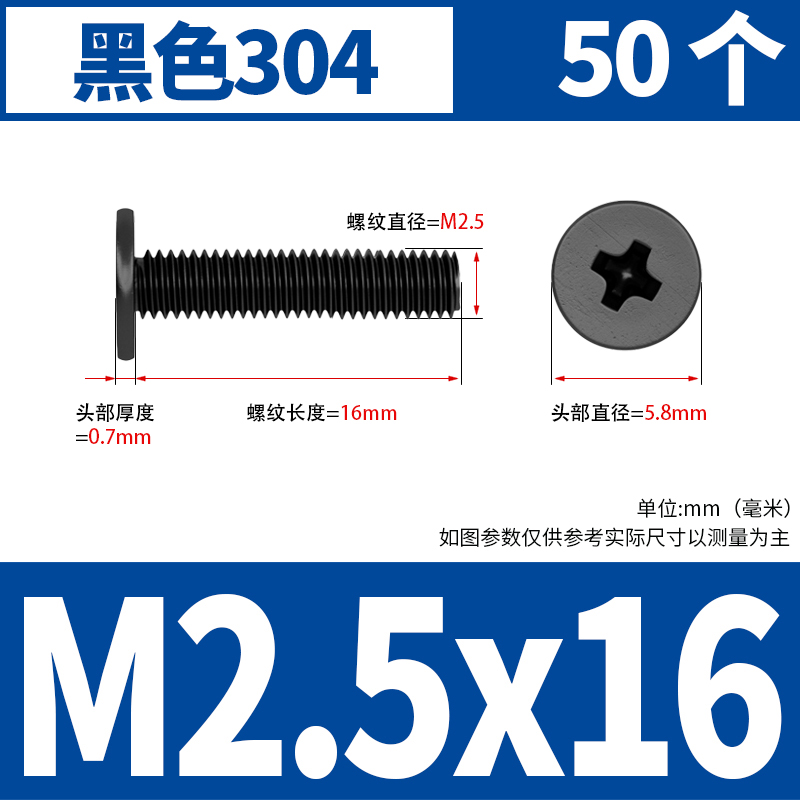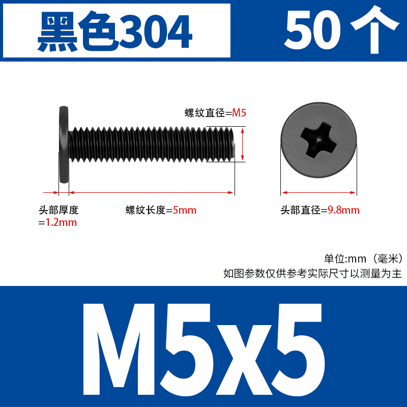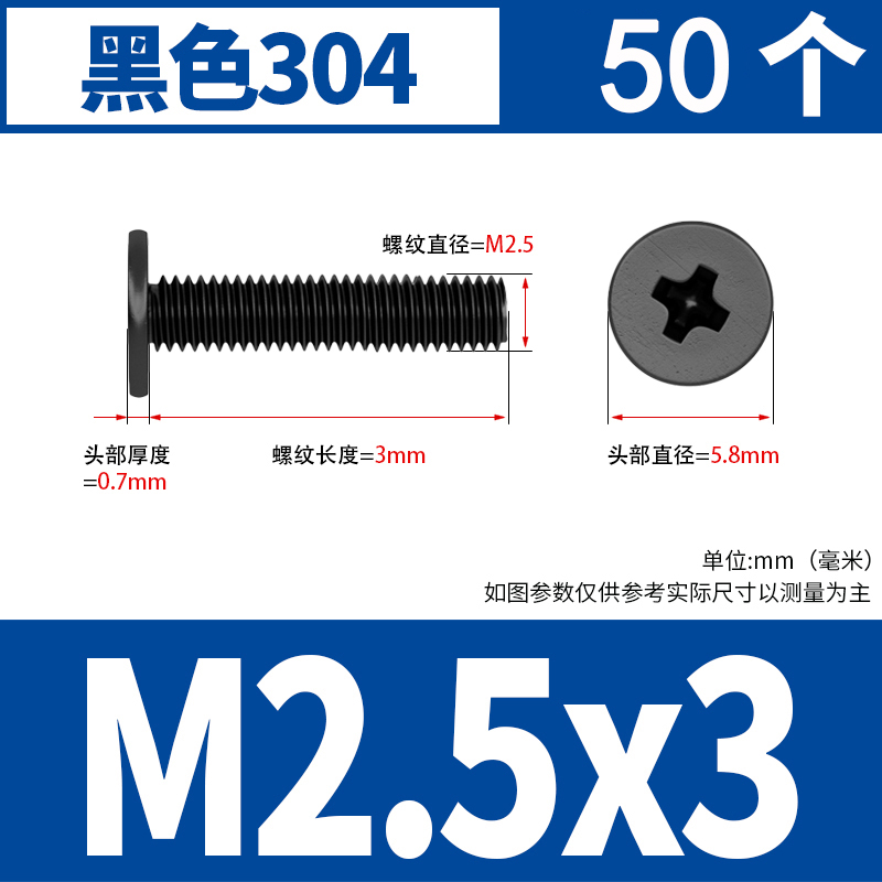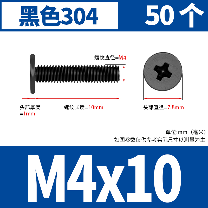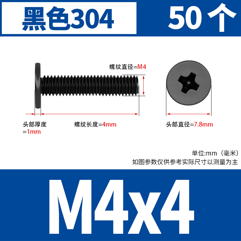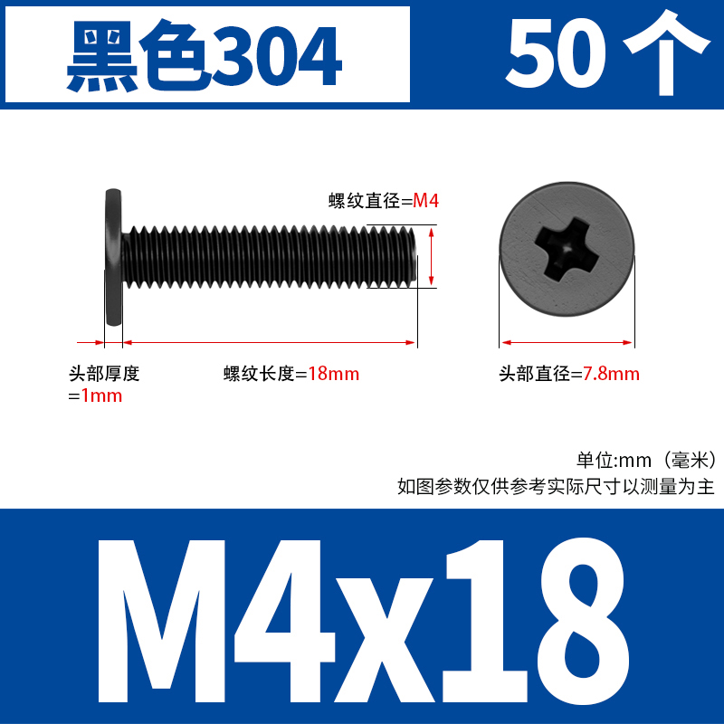 304 스테인레스 스틸 블랙 크로스 플랫 헤드 스크류 CM 대형 플랫 헤드 얇은 헤드 컴퓨터 스크류 M2M3M4M5M6