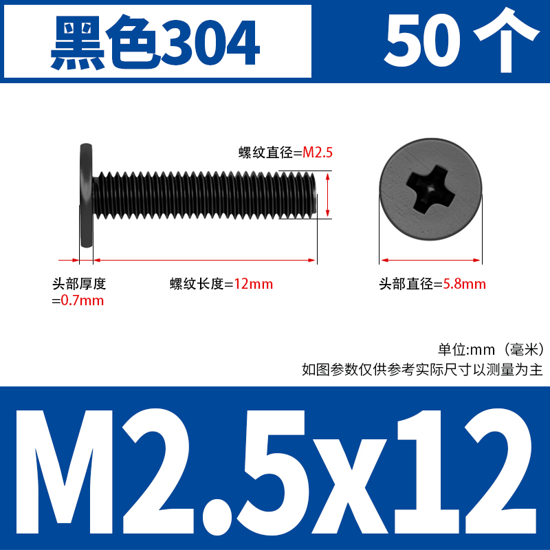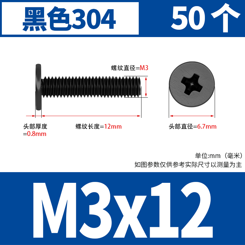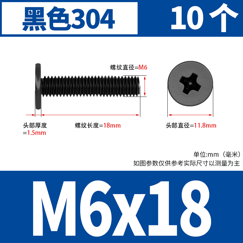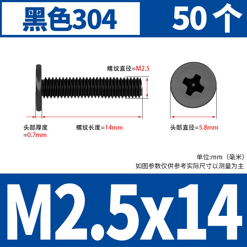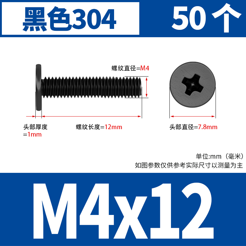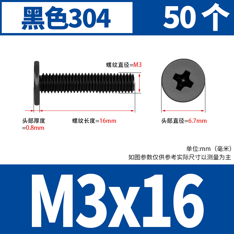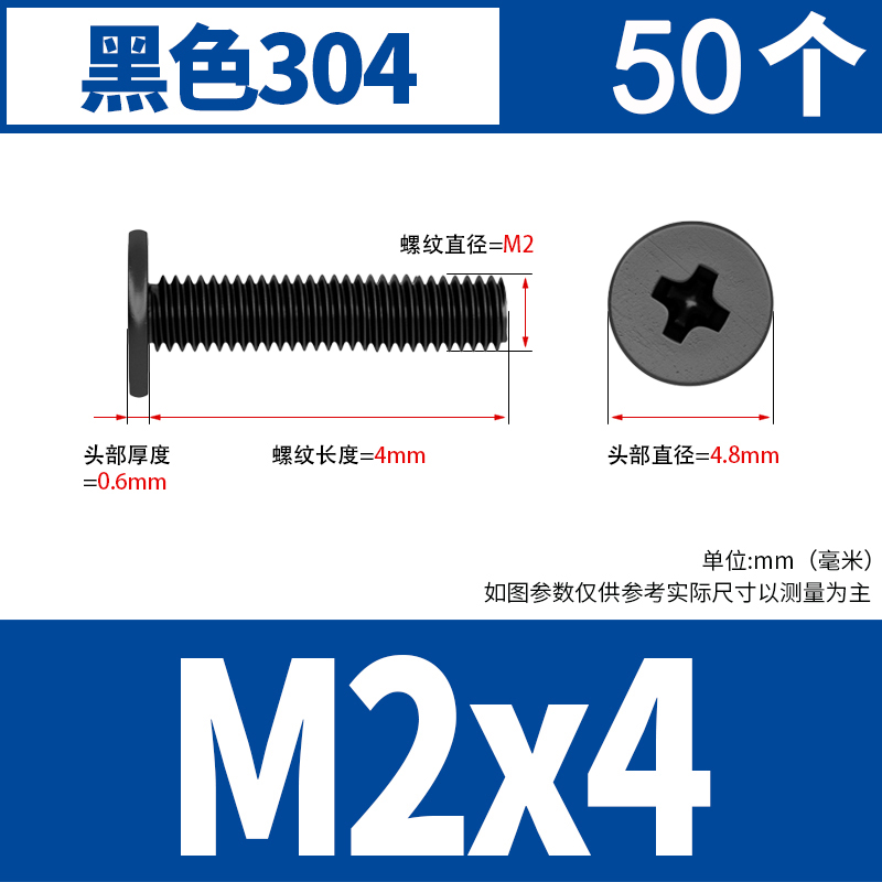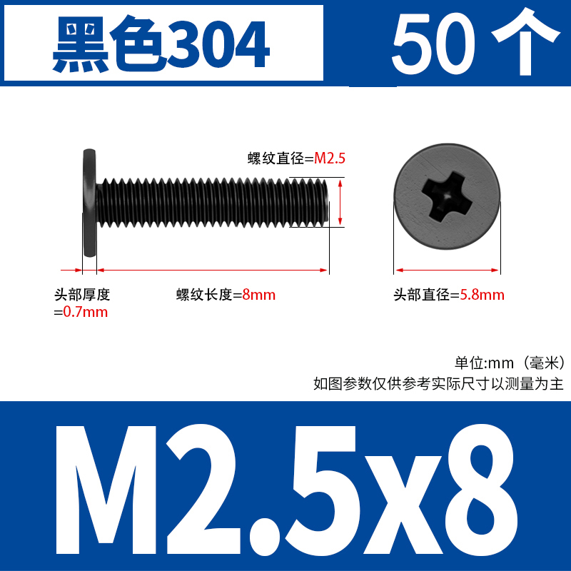 304 스테인레스 스틸 블랙 크로스 플랫 헤드 스크류 CM 대형 플랫 헤드 얇은 헤드 컴퓨터 스크류 M2M3M4M5M6