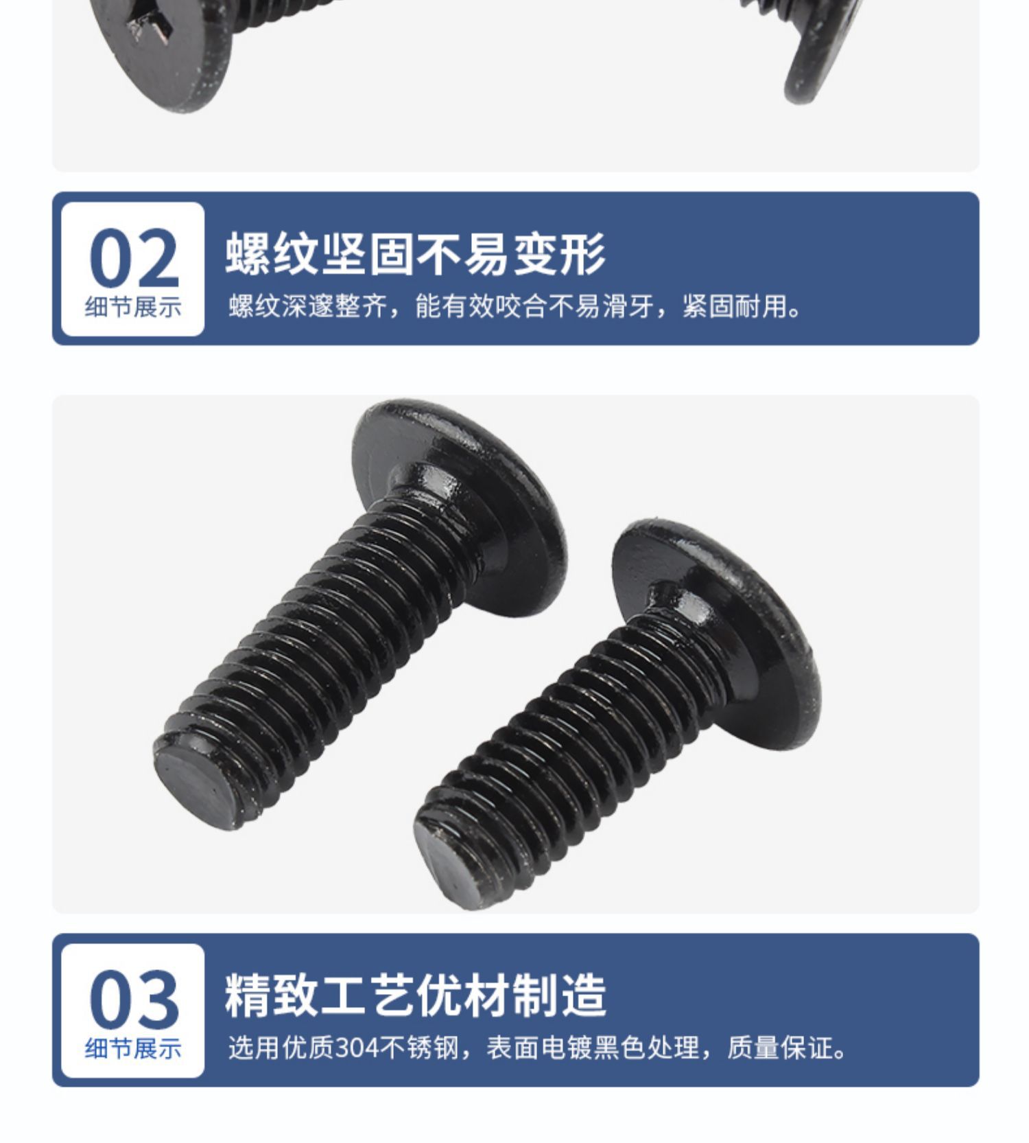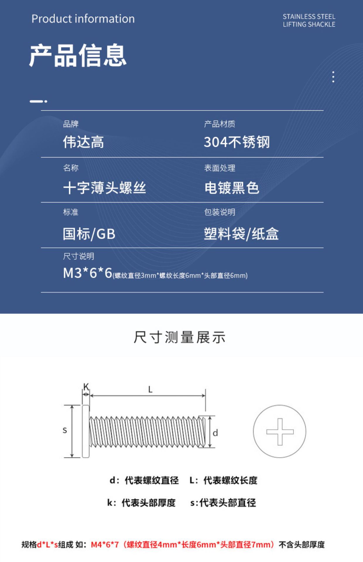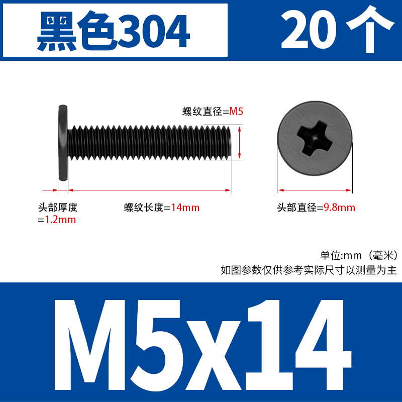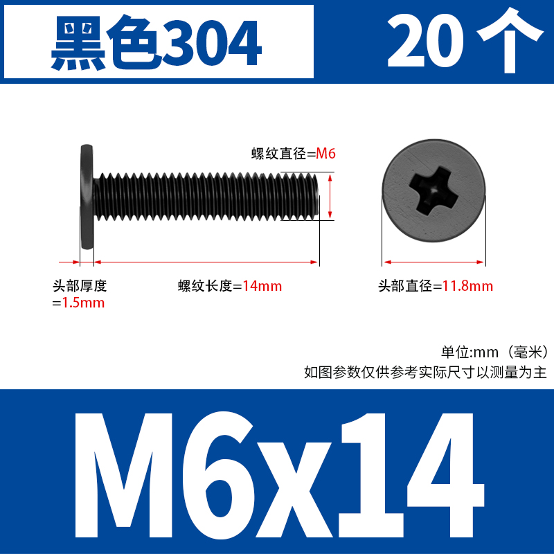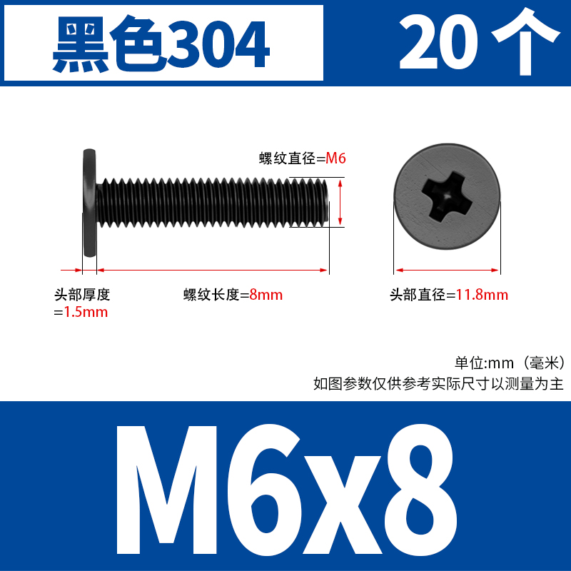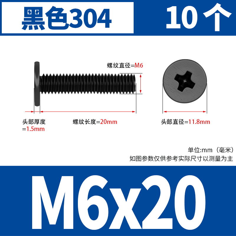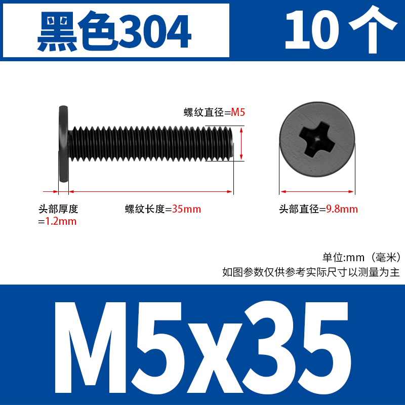 304 스테인레스 스틸 블랙 크로스 플랫 헤드 스크류 CM 대형 플랫 헤드 얇은 헤드 컴퓨터 스크류 M2M3M4M5M6