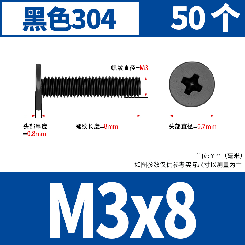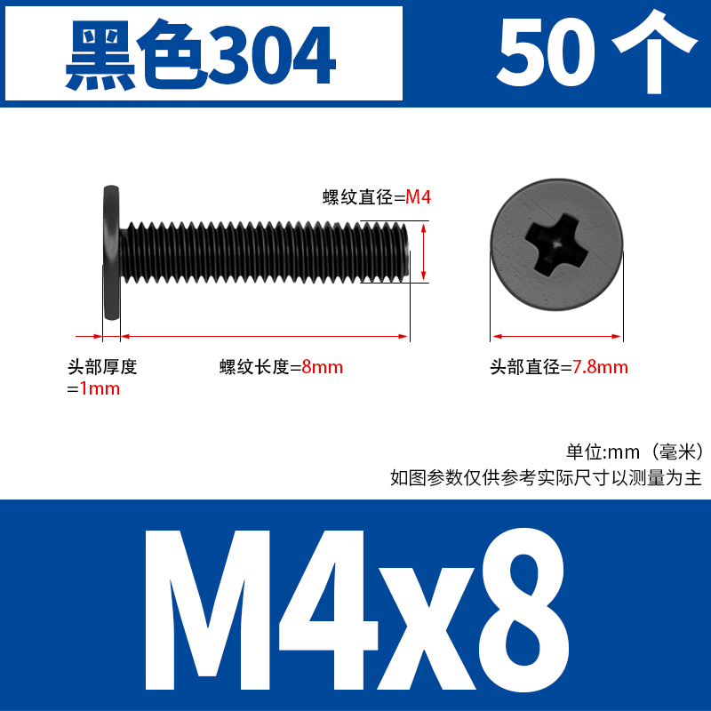 304 스테인레스 스틸 블랙 크로스 플랫 헤드 스크류 CM 대형 플랫 헤드 얇은 헤드 컴퓨터 스크류 M2M3M4M5M6스토어 가기