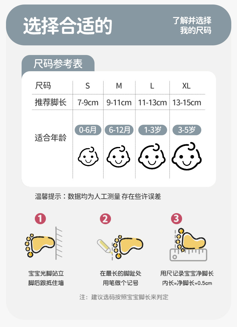 • M 사이즈(발 길이 9-11cm에 적합) 6-12개월