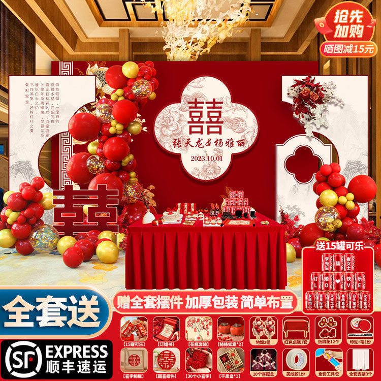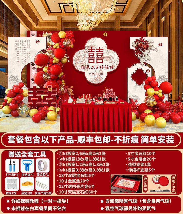 2023 중국 웨딩 연회 장식 웨딩 장식 전체 세트 웨딩 풍선 Apt 배경 벽 Kt 보드