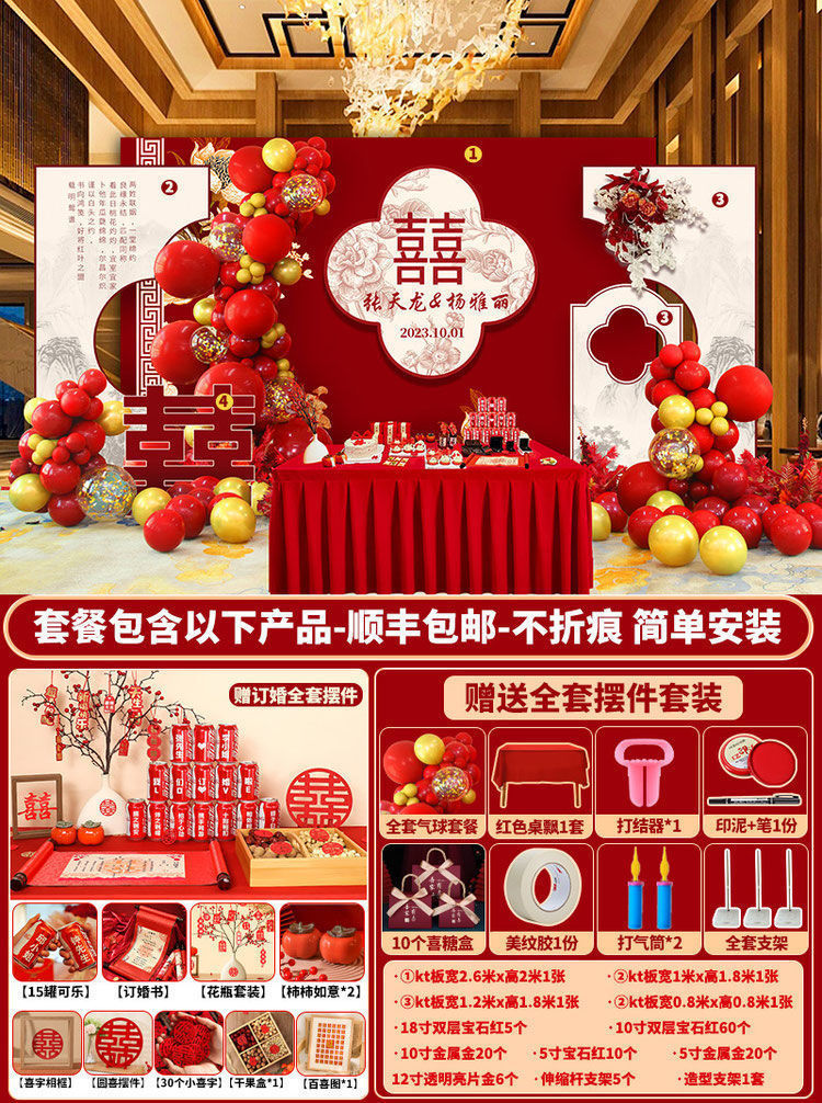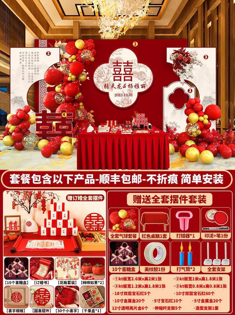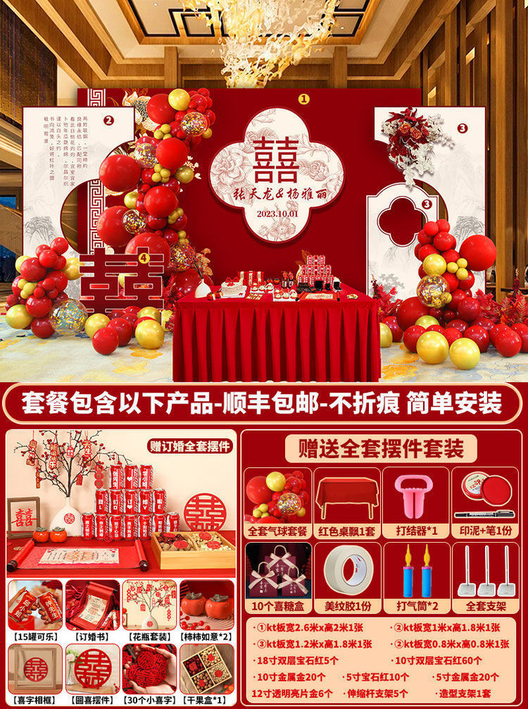 2023 중국 웨딩 연회 장식 웨딩 장식 전체 세트 웨딩 풍선 Apt 배경 벽 Kt 보드스토어 가기