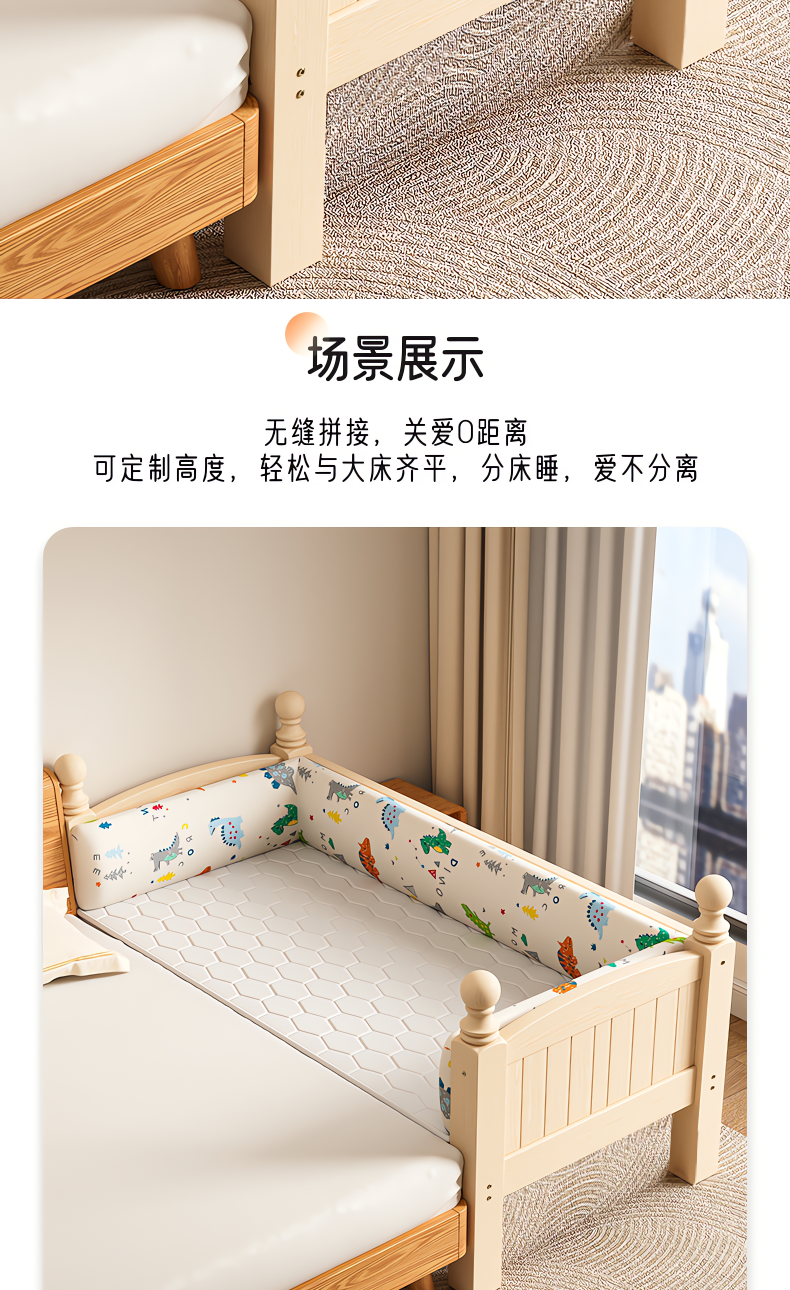 원목 어린이 침대, 주변 확장형 안전가드, 유아용 침대, 아기 침대, 싱글 침대, 확장형 공주 침대