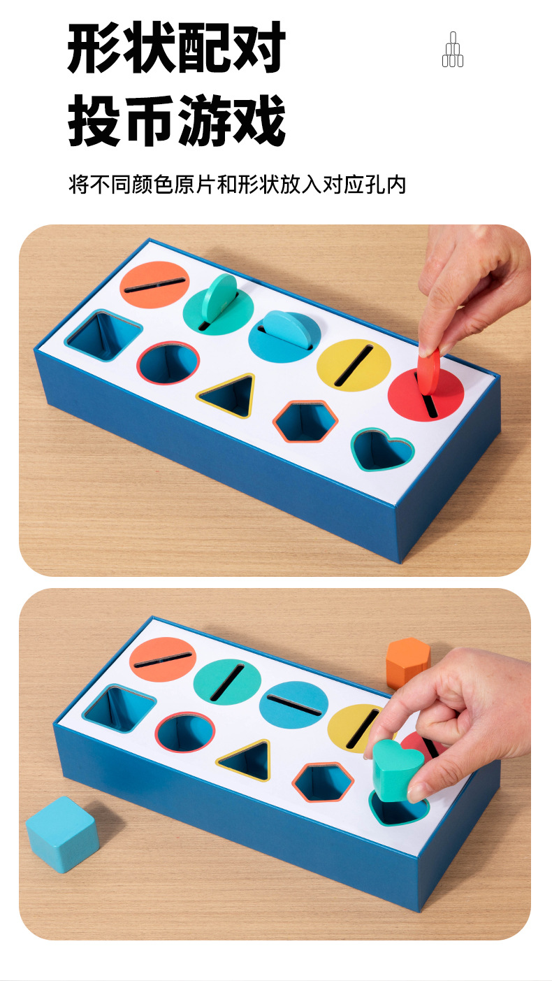 국경 간 몬테소리 장난감 0-3 세 모양 색상 분류 동전 상자 노크 공 아기 조기 교육 보조 장난감스토어 가기
