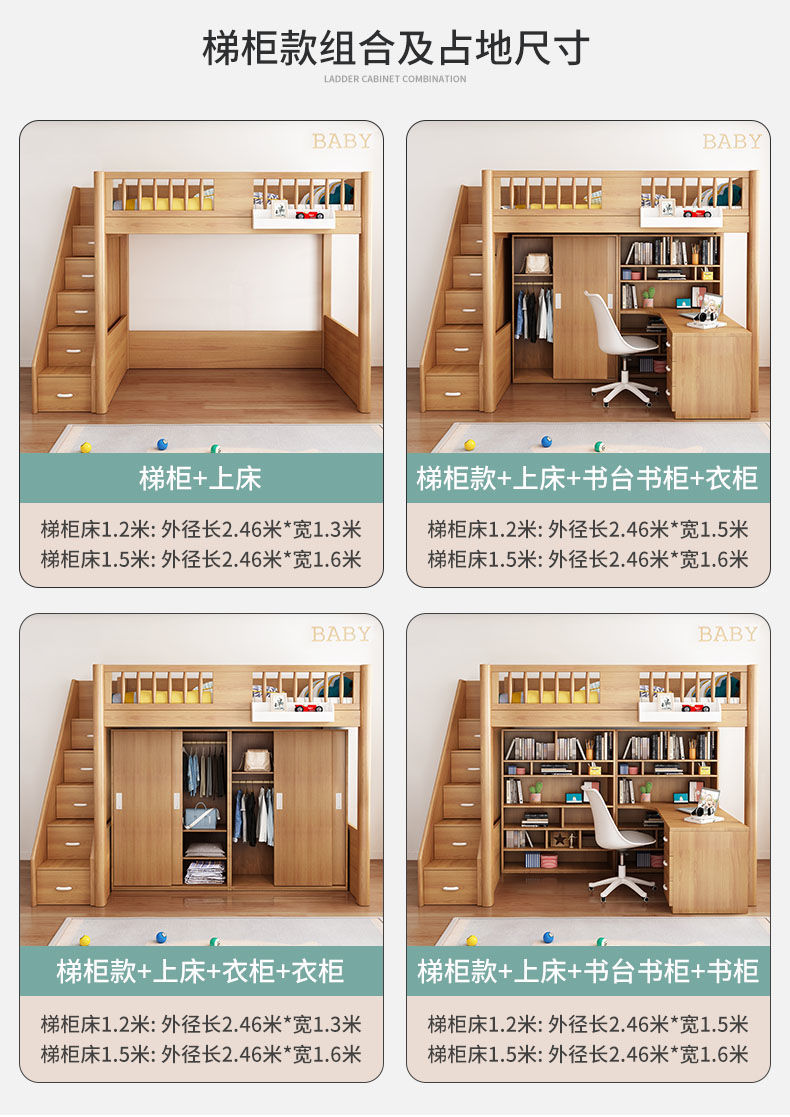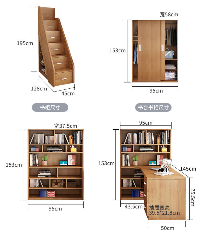 • 사다리 + 로프트 침대 + 옷장 + 책장 책장 (코코넛 야자 매트리스 1개)