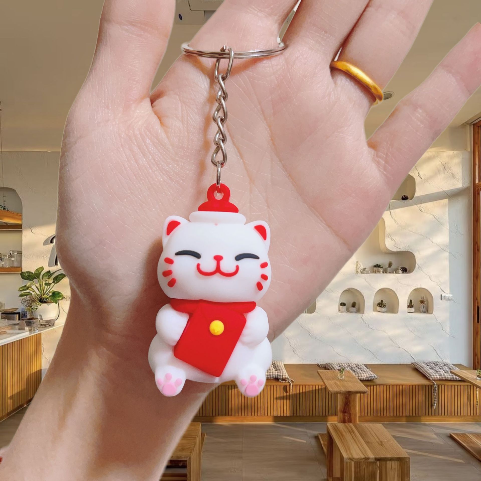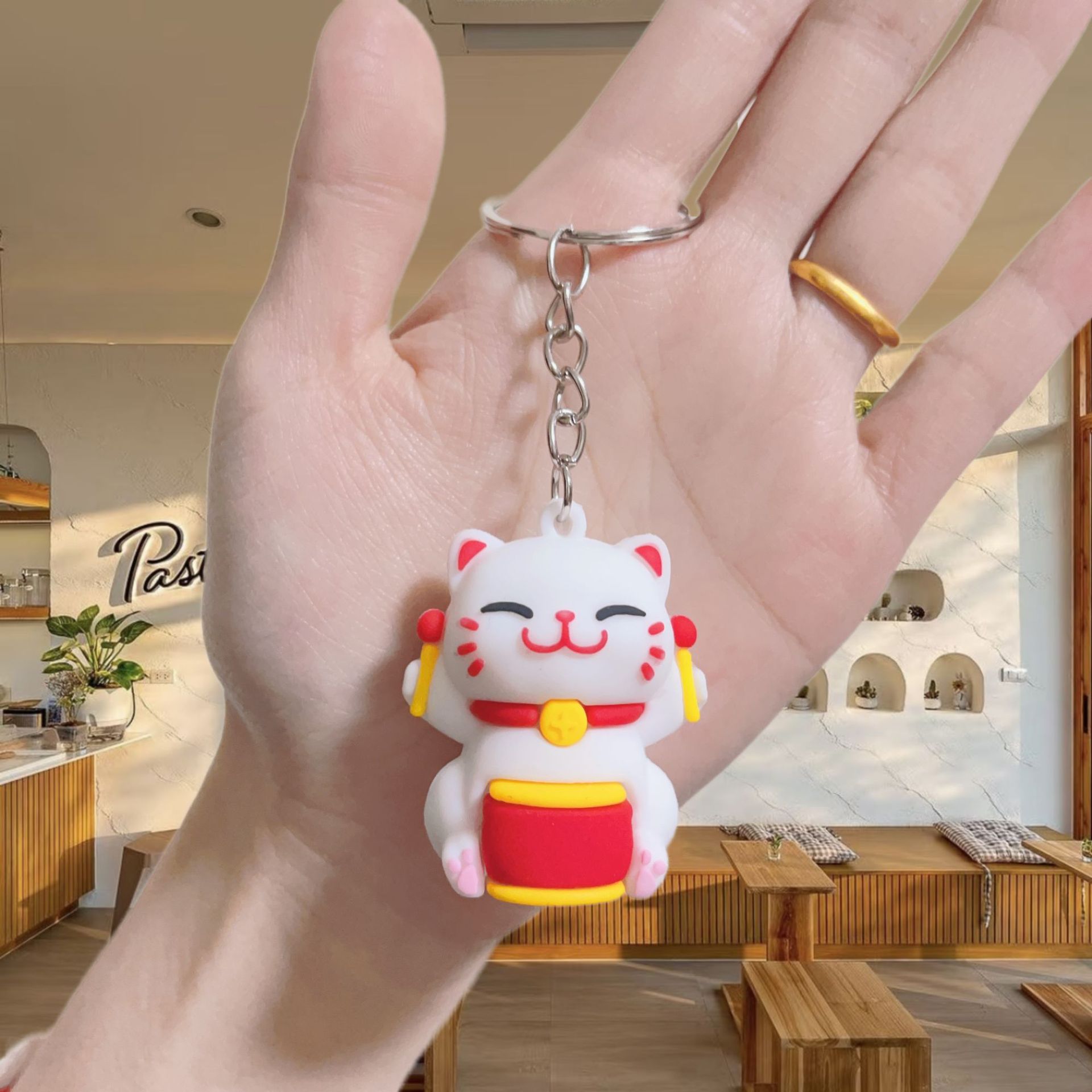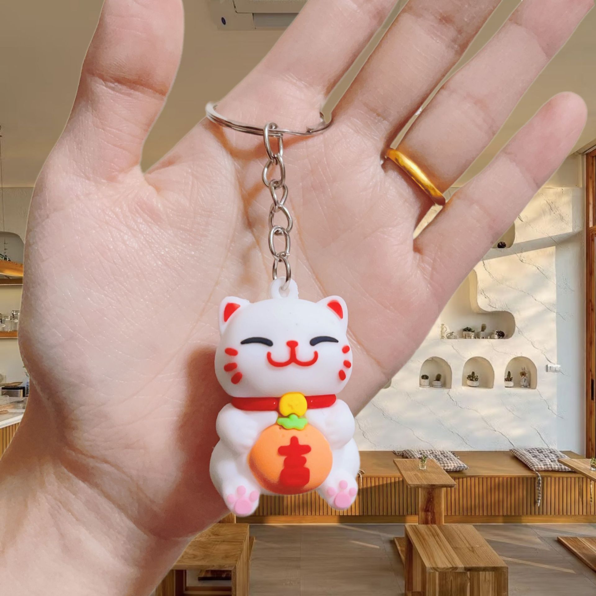 귀여운 행운의 고양이 키 체인 펜던트 부드러운 고무 PVC 3 차원 인형 수제 휴대 전화 케이스 크림 고무 키 체인