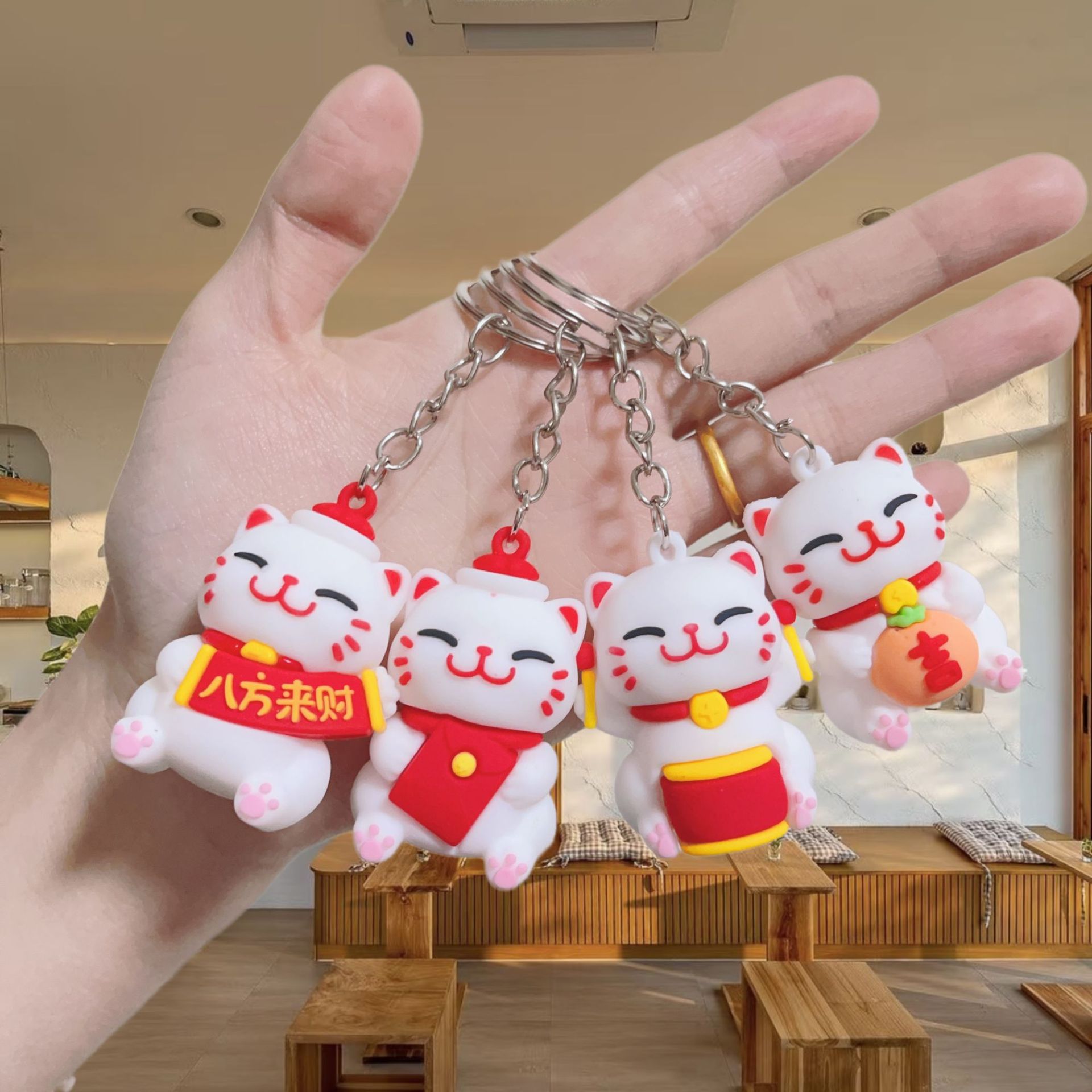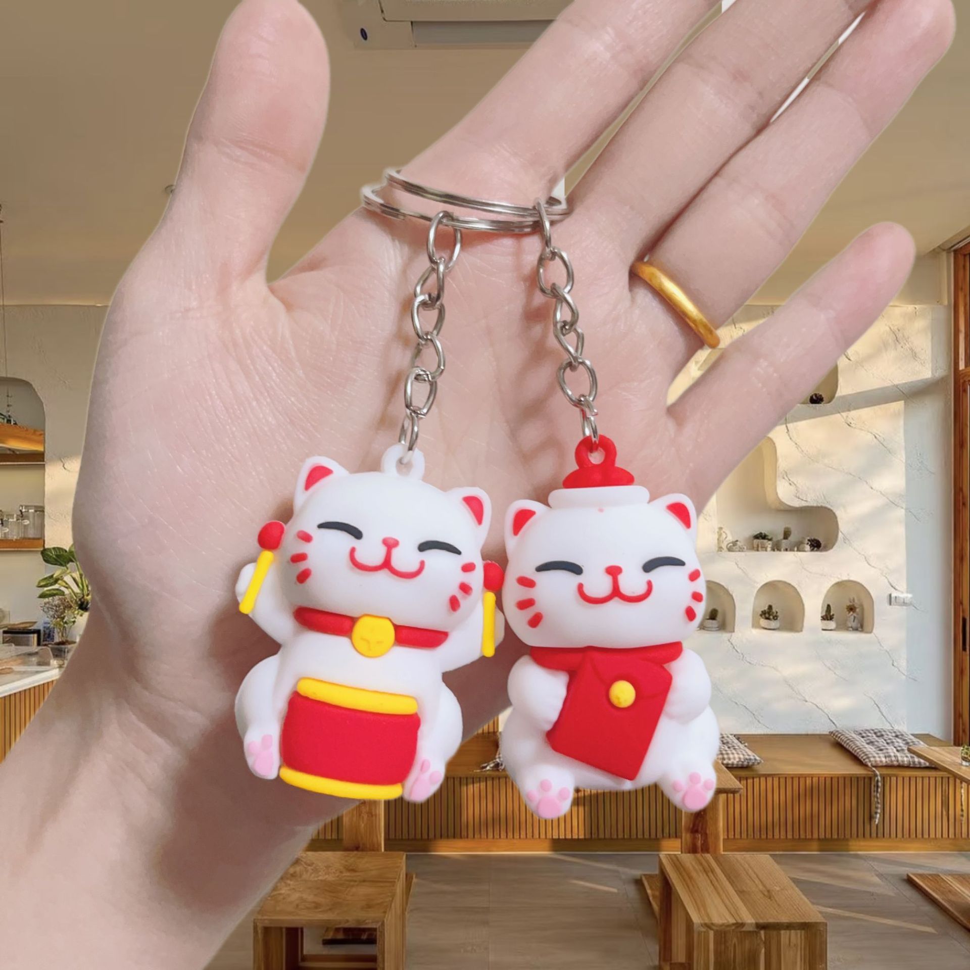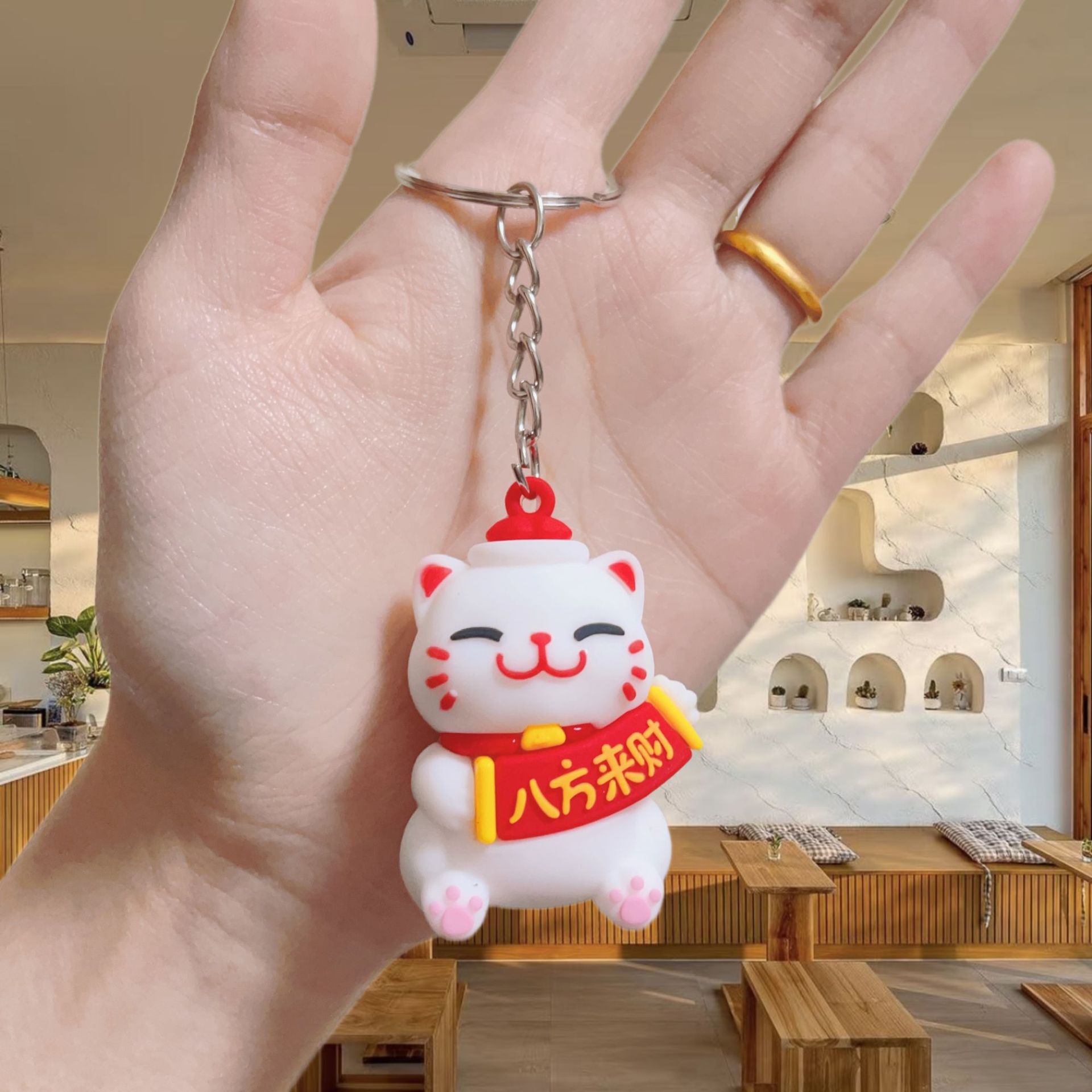 귀여운 행운의 고양이 키 체인 펜던트 부드러운 고무 PVC 3 차원 인형 수제 휴대 전화 케이스 크림 고무 키 체인
