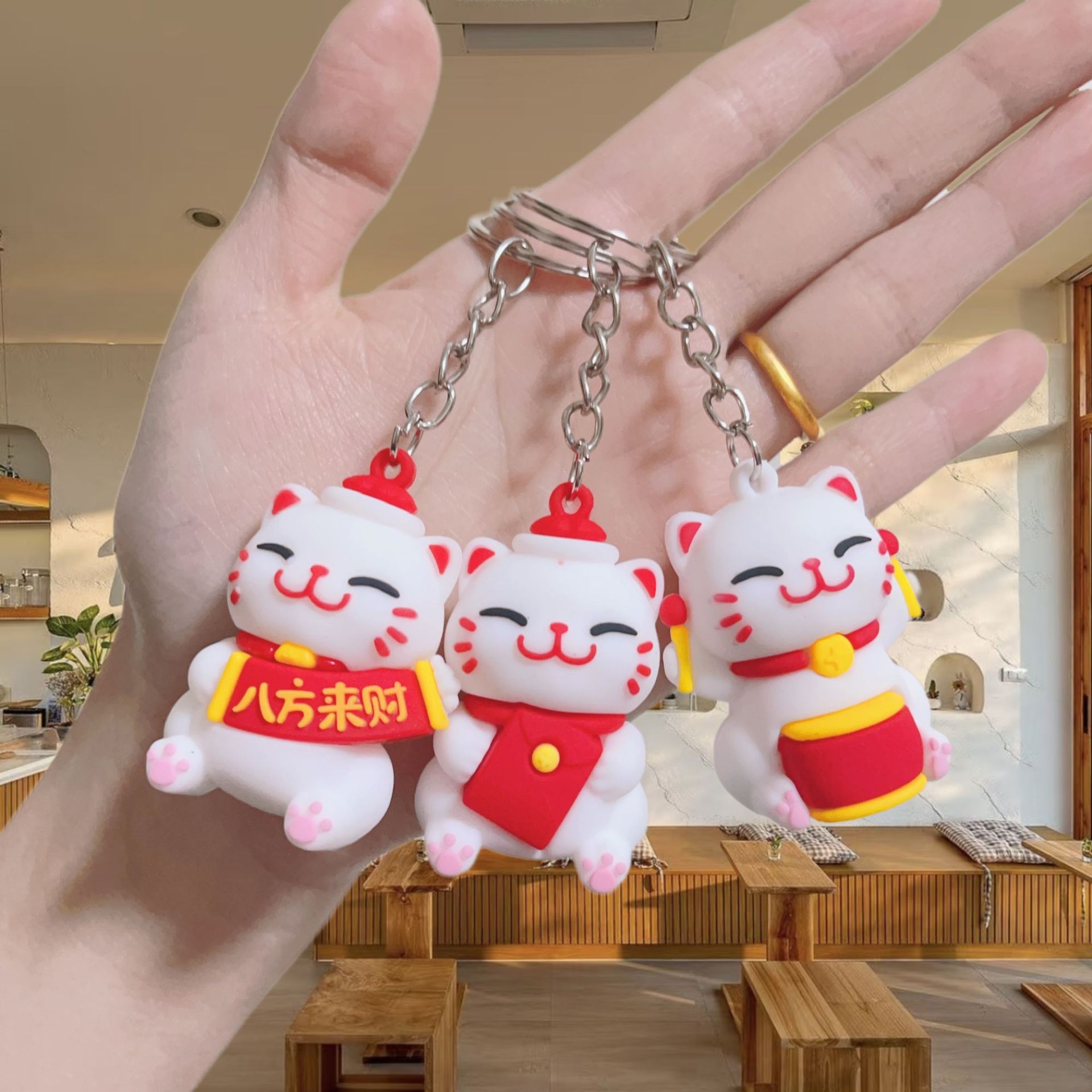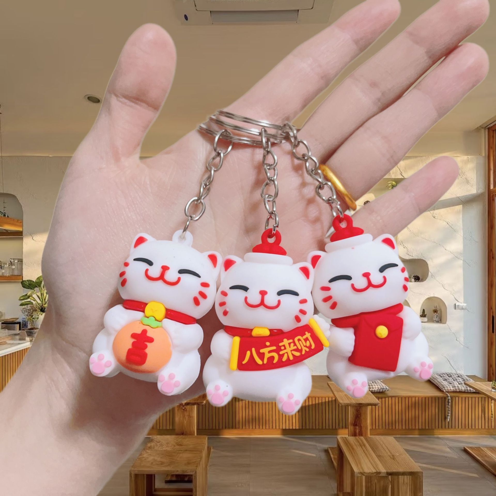 귀여운 행운의 고양이 키 체인 펜던트 부드러운 고무 PVC 3 차원 인형 수제 휴대 전화 케이스 크림 고무 키 체인스토어 가기