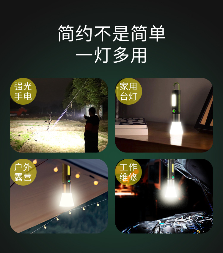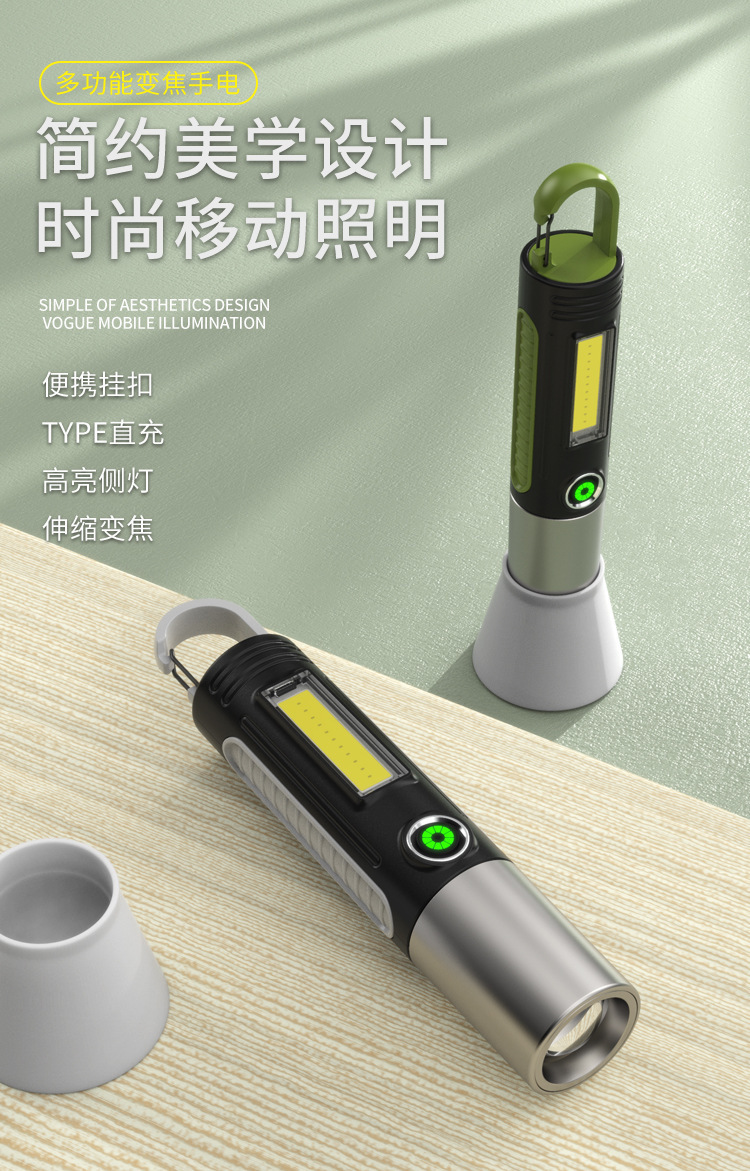 국경 간 새로운 손전등 강한 빛 충전식 야외 다기능 장거리 조명 손전등 LED 휴대용 작업 측면 조명