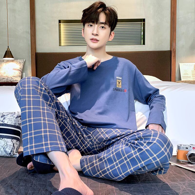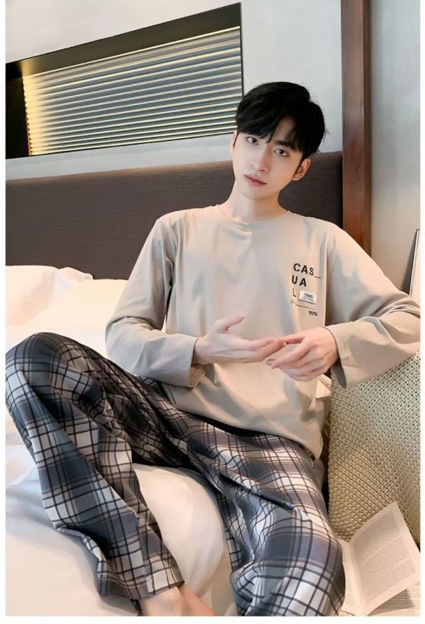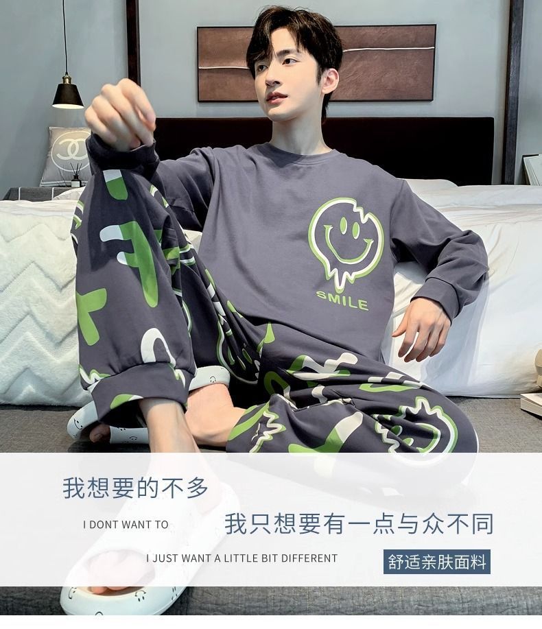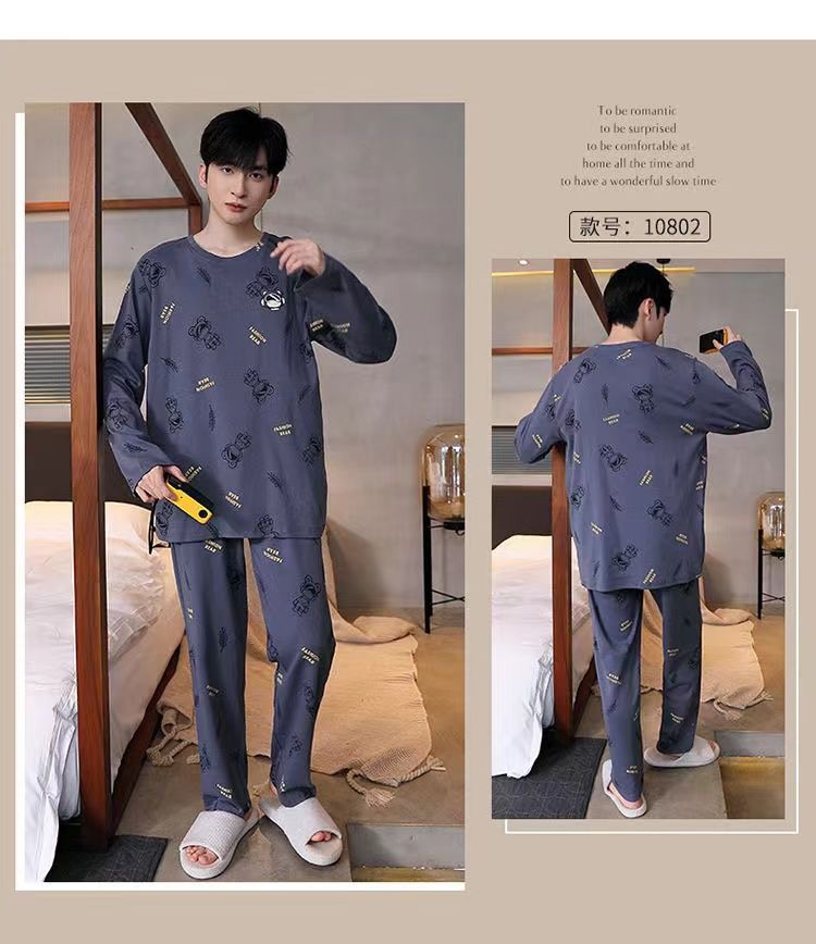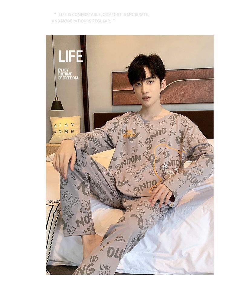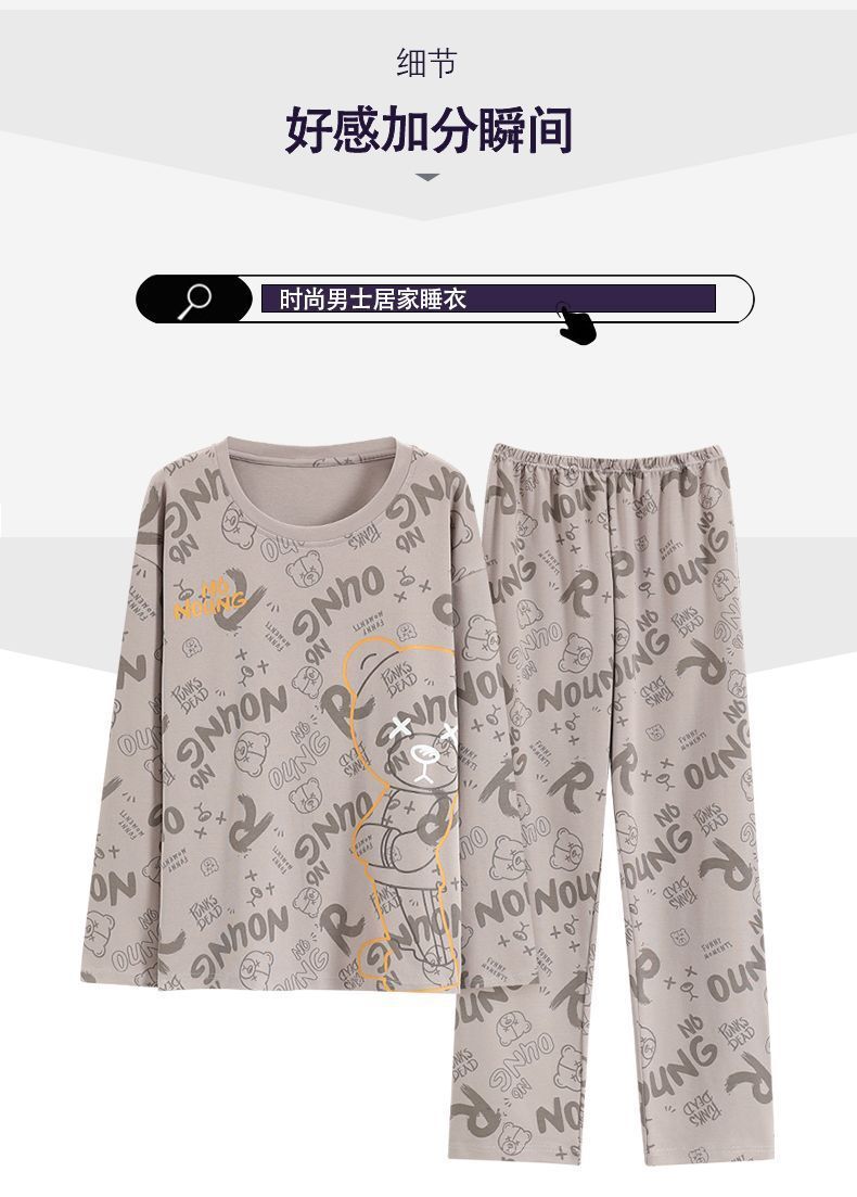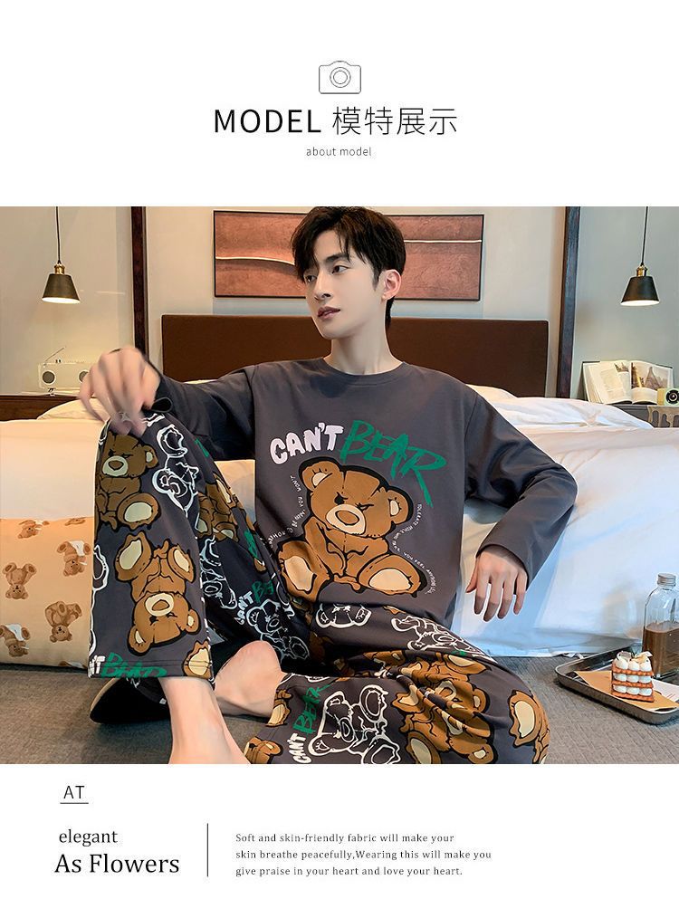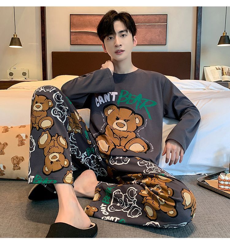 2025 봄과 가을 남자의 새로운 잠옷 남자의 우유 실크 긴 소매 세트 만화 느슨한 외부 착용 홈 옷스토어 가기