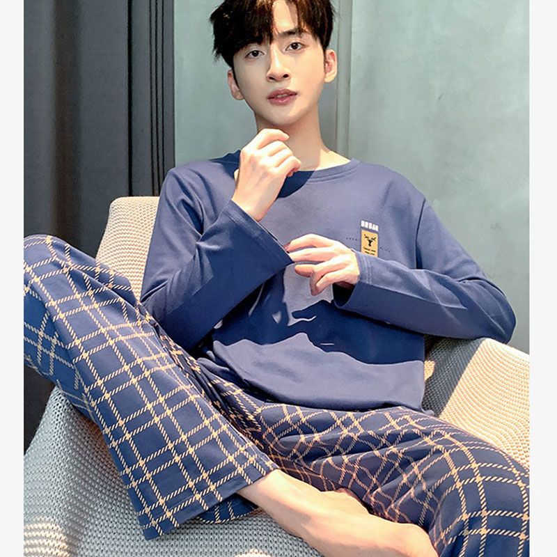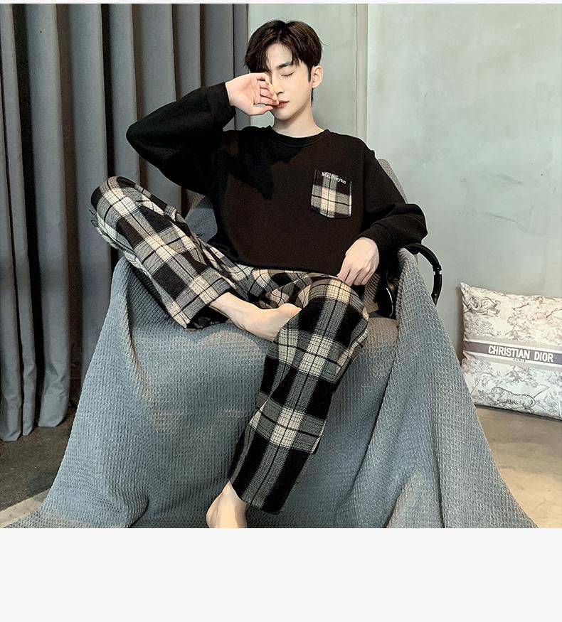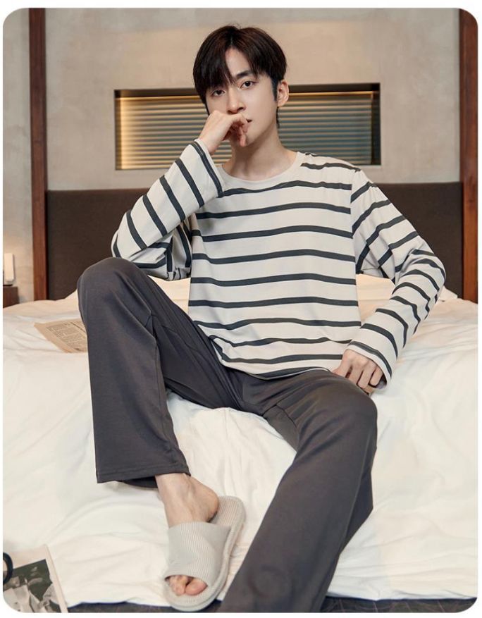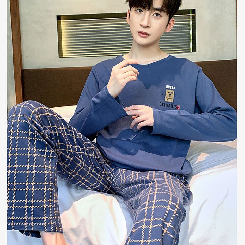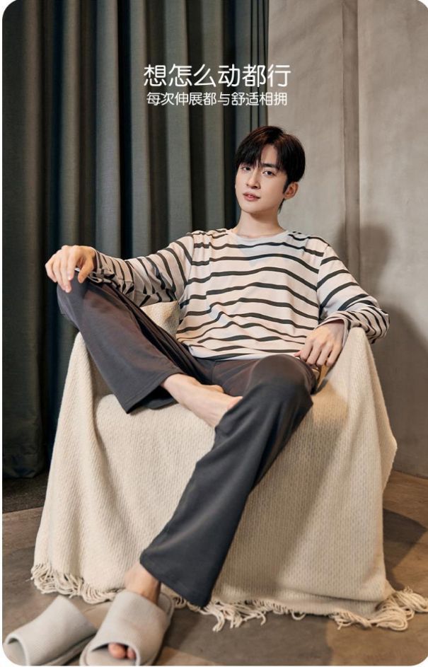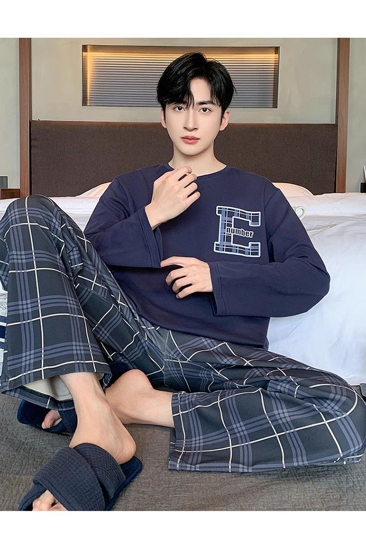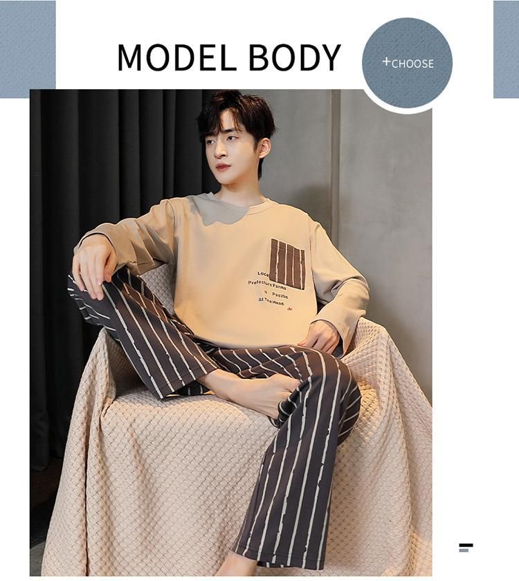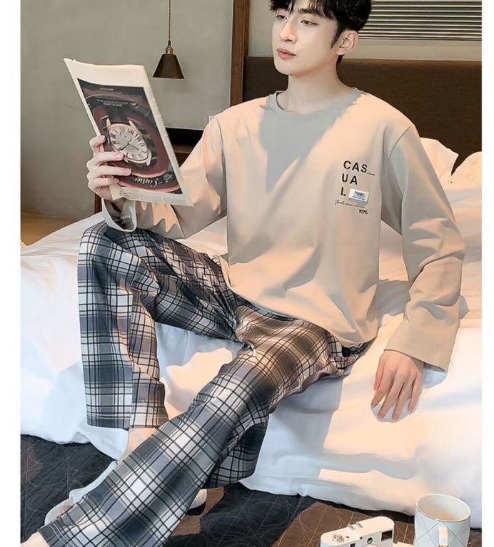 2025 봄과 가을 남자의 새로운 잠옷 남자의 우유 실크 긴 소매 세트 만화 느슨한 외부 착용 홈 옷스토어 가기