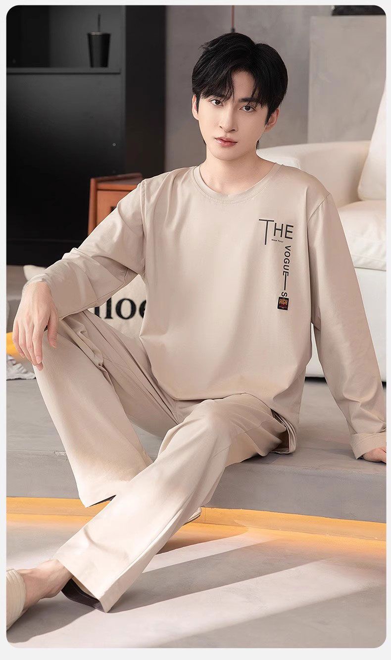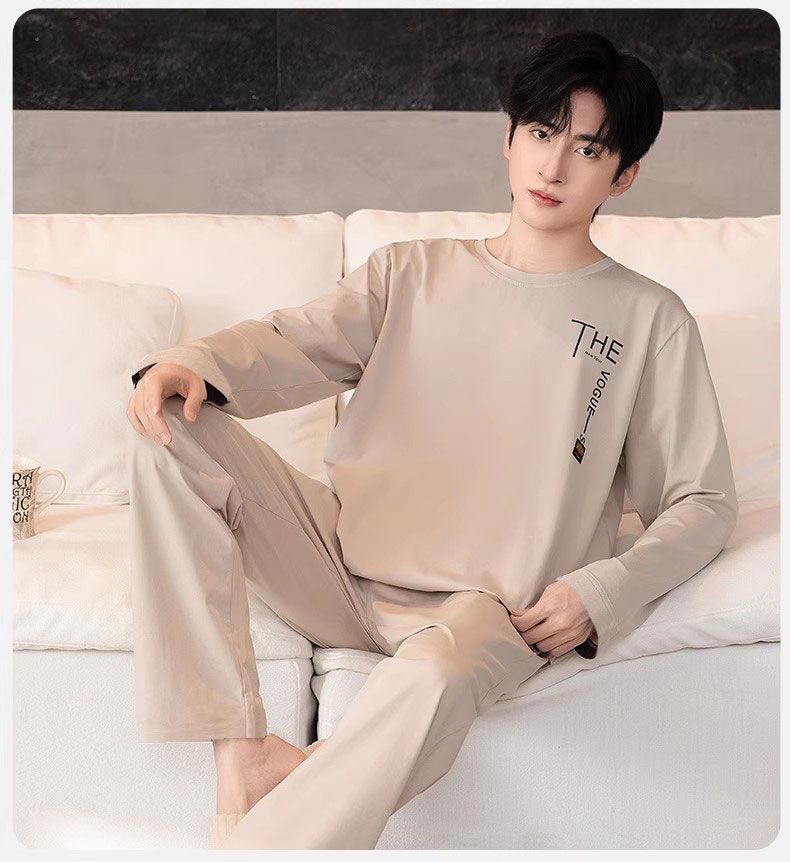 2025 봄과 가을 남자의 새로운 잠옷 남자의 우유 실크 긴 소매 세트 만화 느슨한 외부 착용 홈 옷