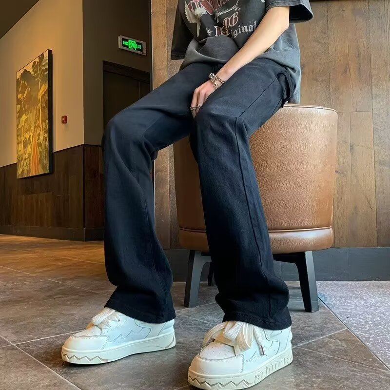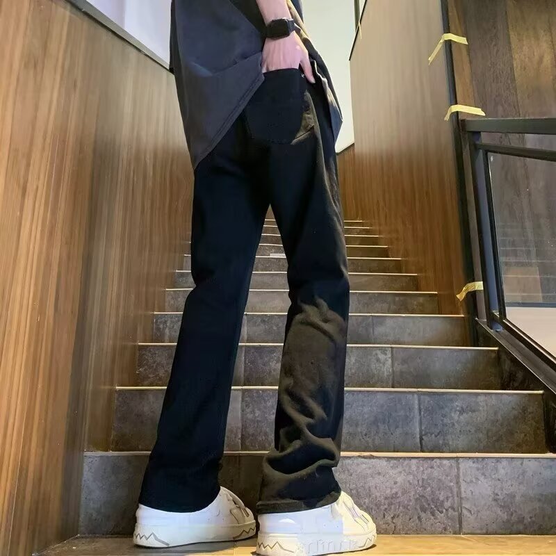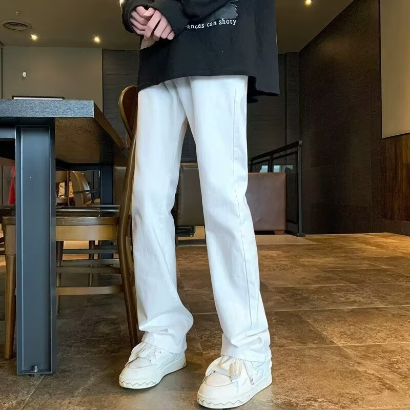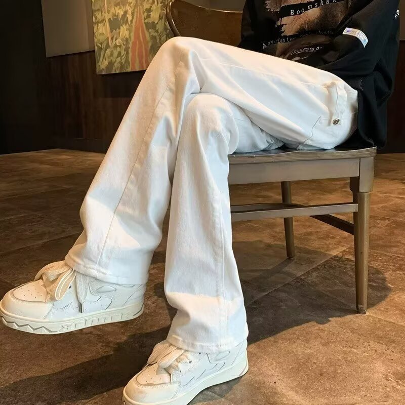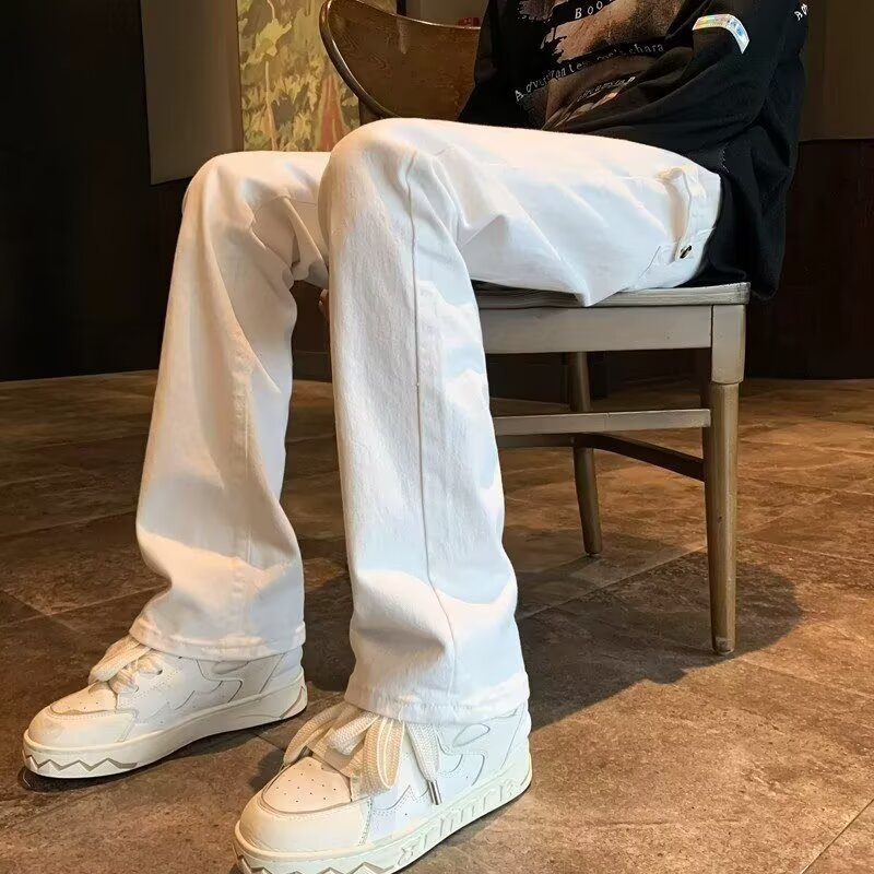 퓨어 화이트 슬림 핏 청바지 남성용 아메리칸 스타일 하이 스트리트 바이브 바지 클렌핏 하이 엔드 센스 마이크로 스트레이트 크로스 보더스토어 가기