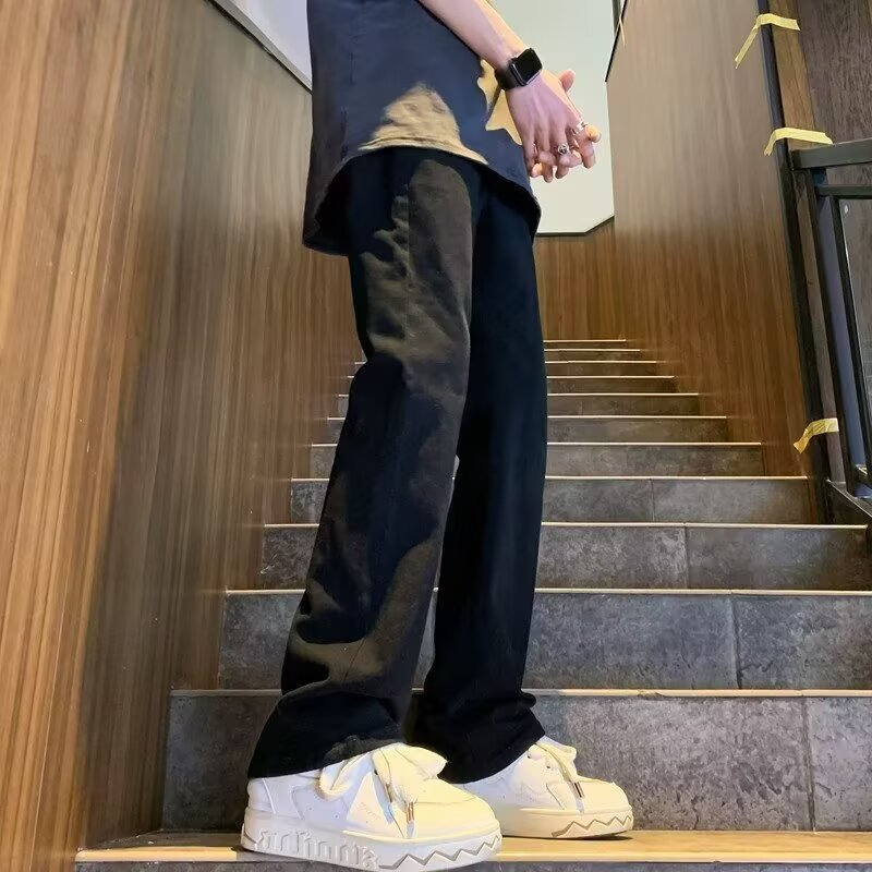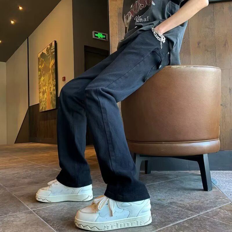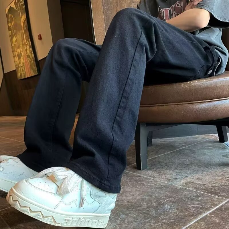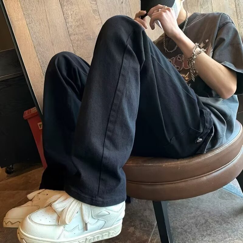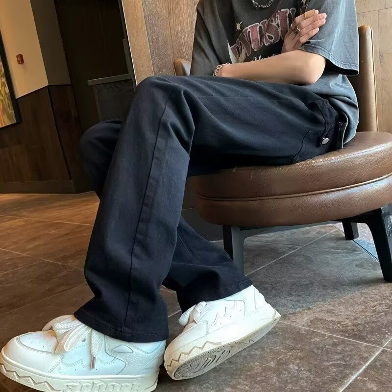 퓨어 화이트 슬림 핏 청바지 남성용 아메리칸 스타일 하이 스트리트 바이브 바지 클렌핏 하이 엔드 센스 마이크로 스트레이트 크로스 보더스토어 가기