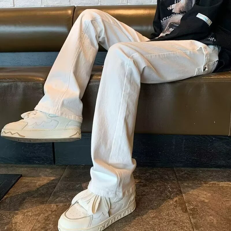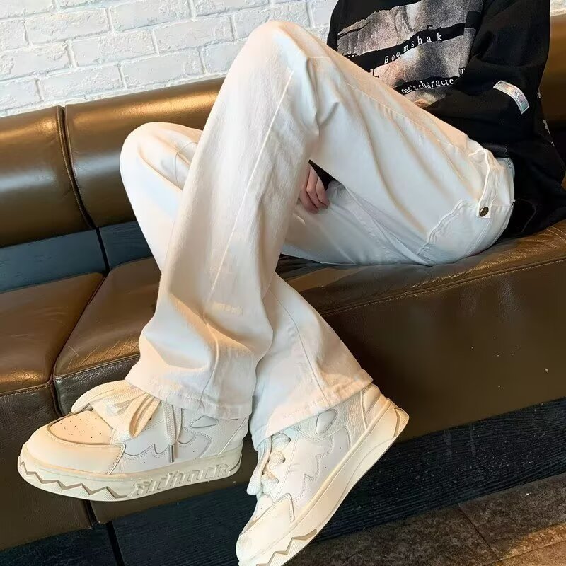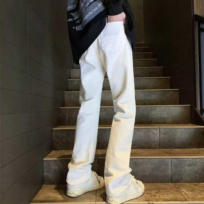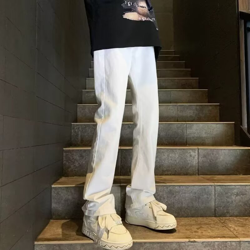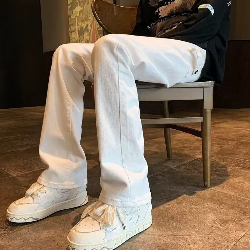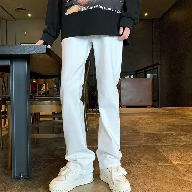 퓨어 화이트 슬림 핏 청바지 남성용 아메리칸 스타일 하이 스트리트 바이브 바지 클렌핏 하이 엔드 센스 마이크로 스트레이트 크로스 보더