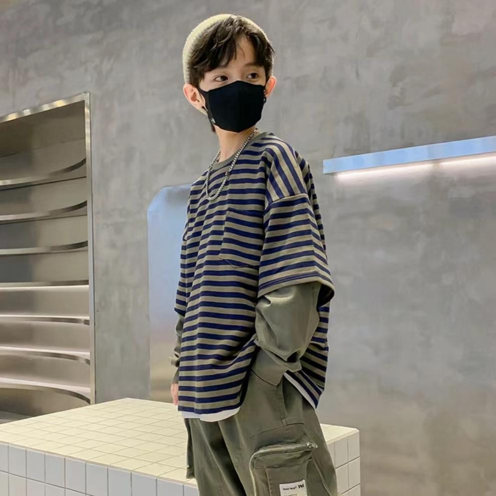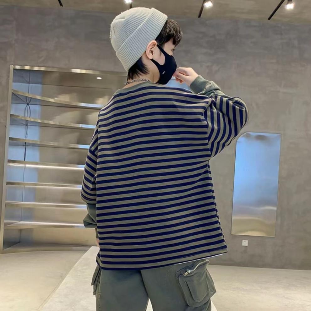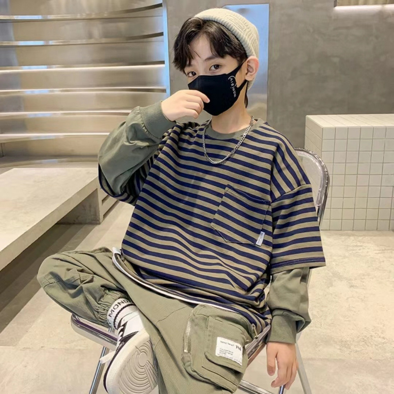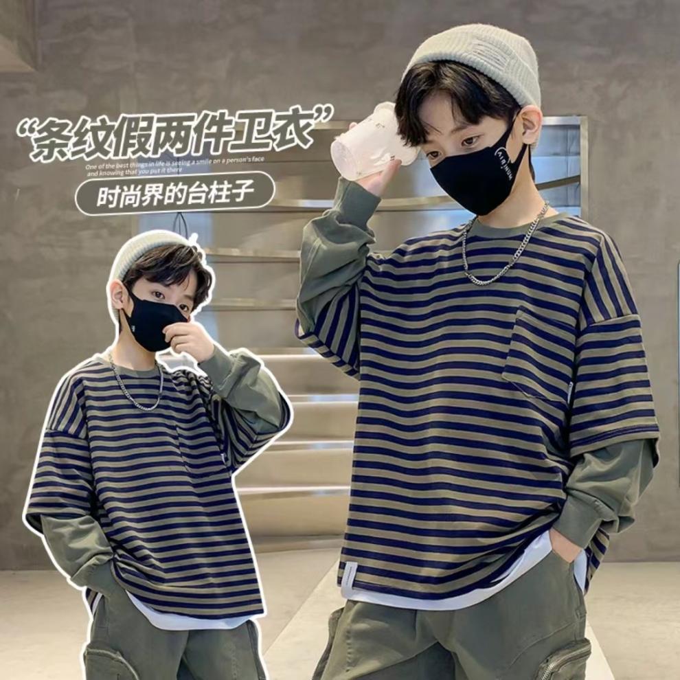 남학생과 여학생을위한 어린이 긴팔 가을 스웨터 유니섹스 서양식 캐주얼 올 매치 스포츠 편안한 소프트 페이크 투피스 탑