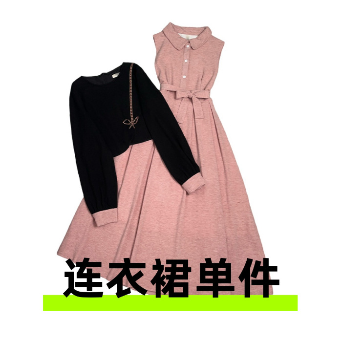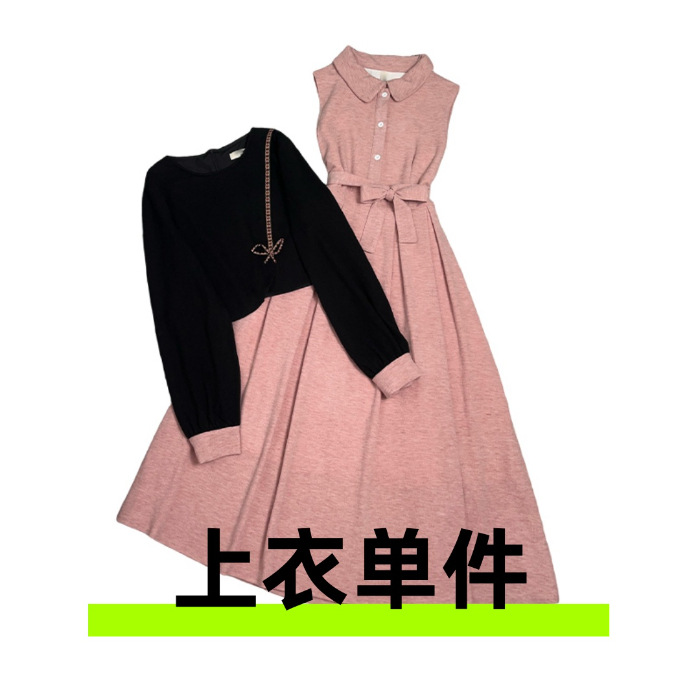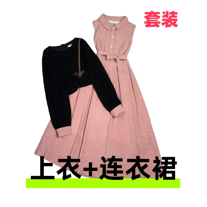 프랑스 달콤한 대학 스타일 스택 조끼 원피스 여성 2025 년 봄과 가을 새로운 우아한 긴 소매 탑 2 피스 세트스토어 가기