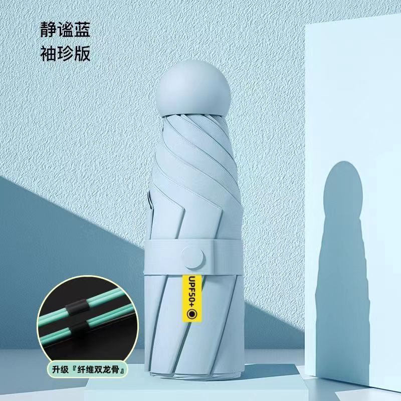 울트라 라이트 태양 우산 선 스크린 UV 보호 여성의 작은 우산 휴대용 캡슐 우산 미니 50% 접은 우산 이중-맑고 비오는