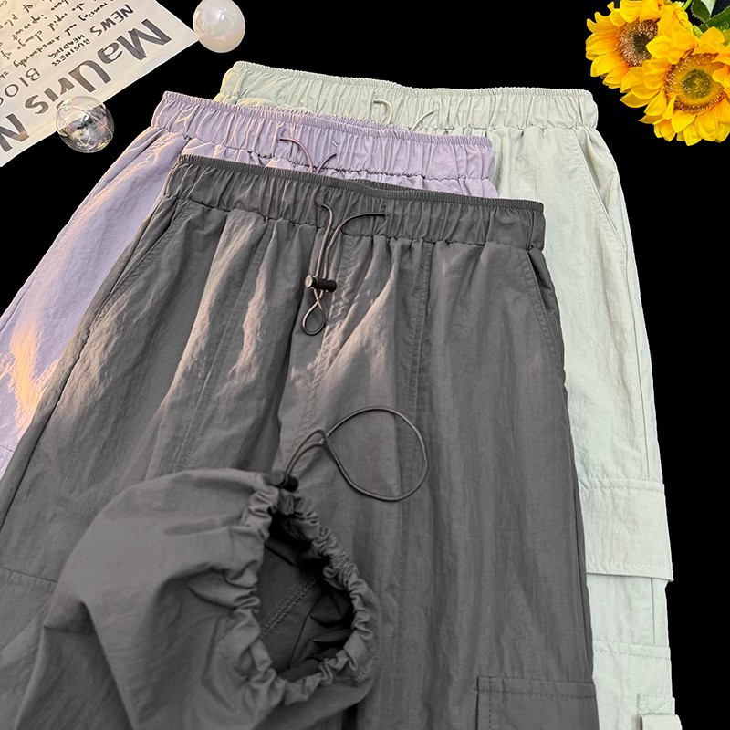 여성용 아메리칸 드로스트링 등산 카고 팬츠, 여름용 얇은 팬츠, 아이스 실크 속건성 레깅스 스몰 사이즈용 스웨트팬츠스토어 가기