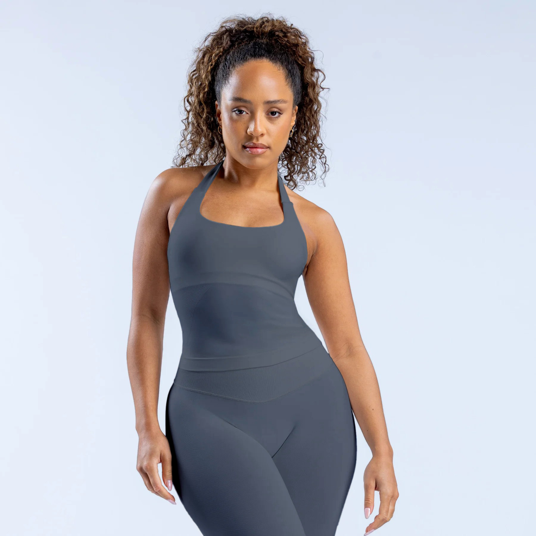 새로운 DFYNE 유럽과 미국의 크로스 오버 원활한 요가 백리스 넥 스포츠 조끼 바디 쉐이핑 안티 워킹 여성 조끼