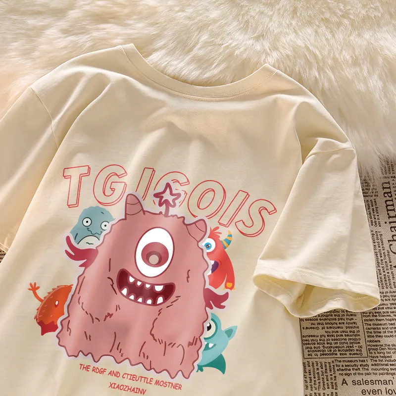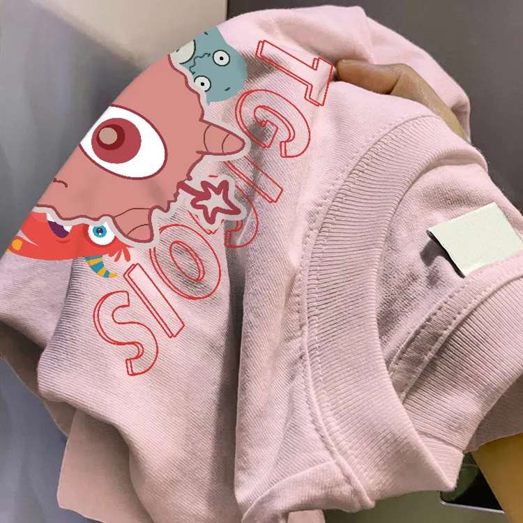 아메리칸 스타일 레트로 전국 패션 하이 스트리트 핑크 퓨어 코튼 반팔 티셔츠 여성용 느슨한 여름 틈새 디자인 센스 반소매 탑