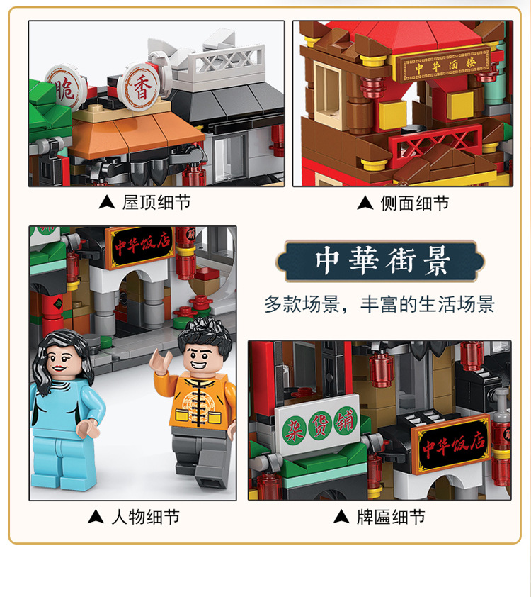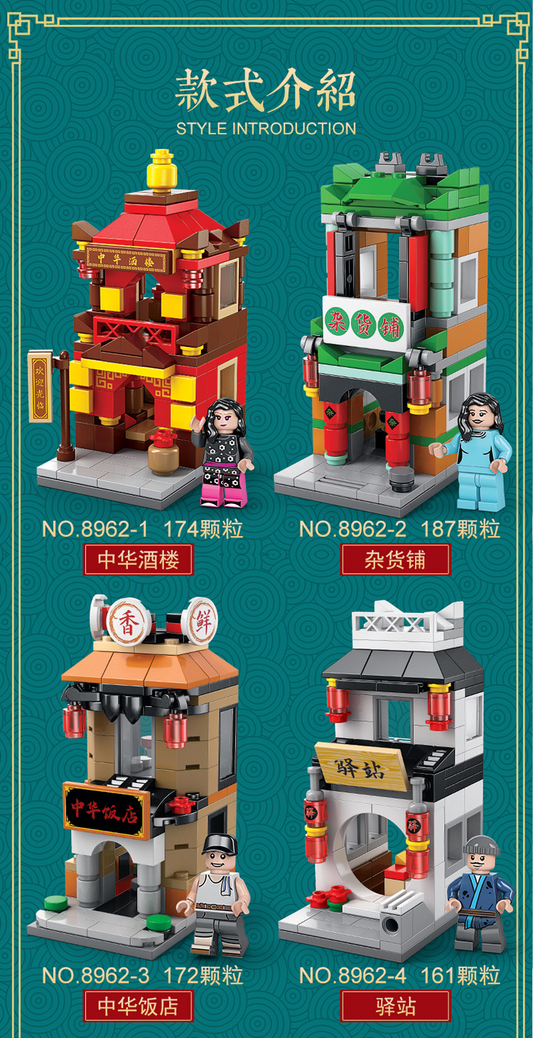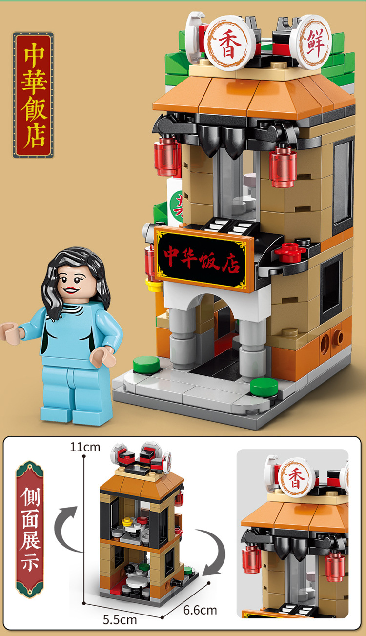 [도매 세대] 레고 빌딩 조립 소년 소녀 창조적 인 장난감과 호환되는 중국 스트리트 뷰 스낵 스트리트 퍼즐