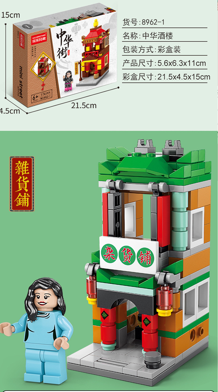 [도매 세대] 레고 빌딩 조립 소년 소녀 창조적 인 장난감과 호환되는 중국 스트리트 뷰 스낵 스트리트 퍼즐스토어 가기