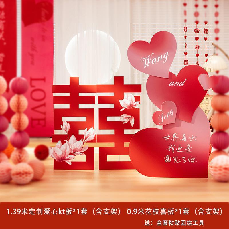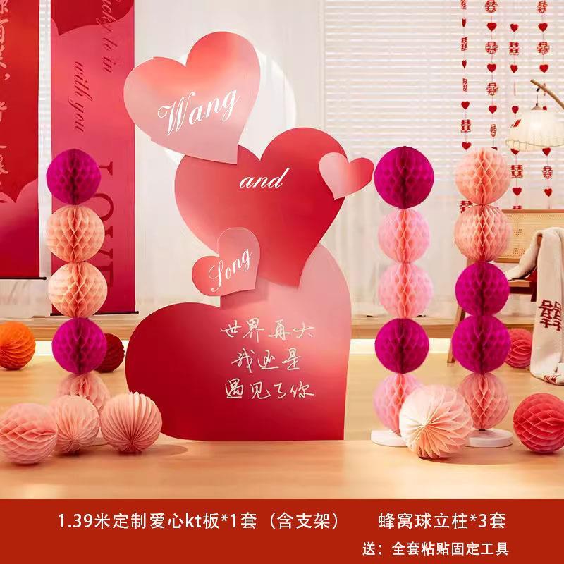 • [이름은 사용자 정의 가능] Love kt 보드 + My Family Youxi kt 보드 + 도로 리드 원사 꽃 + 벌집 공 기둥 (빨간색)