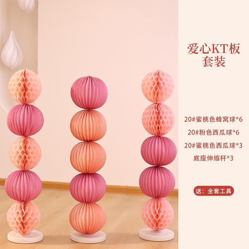 • 러브 kt 보드 + 더블 해피니스 장식 + 벌집 볼 컬럼 (다크 핑크)
