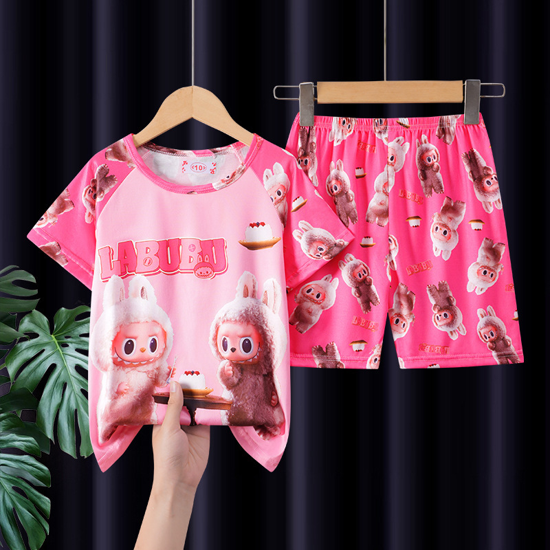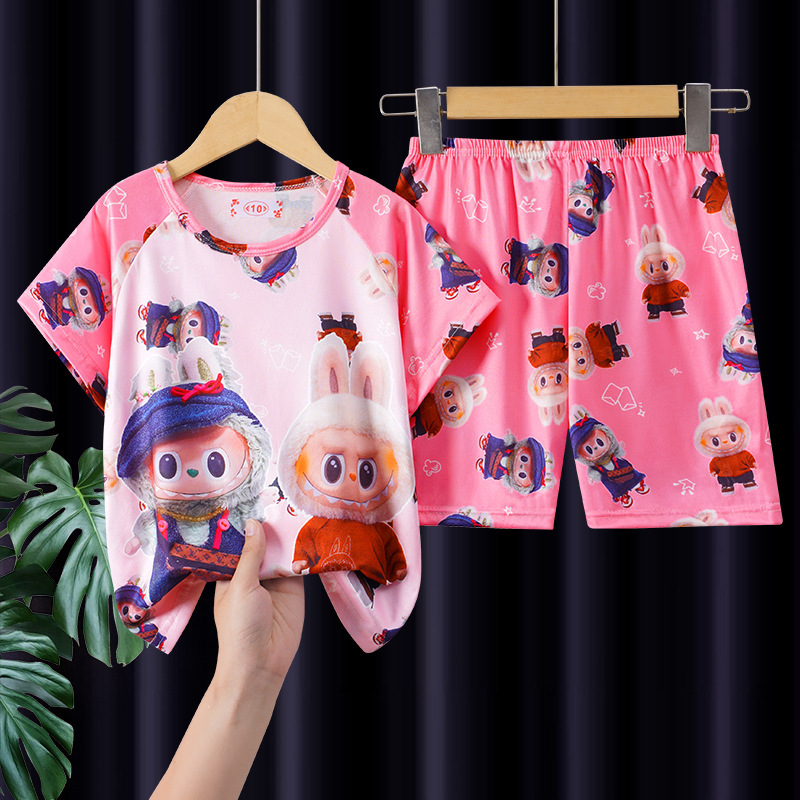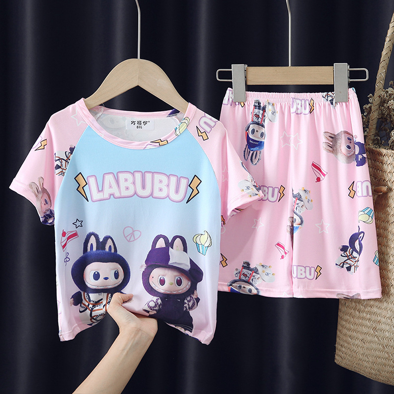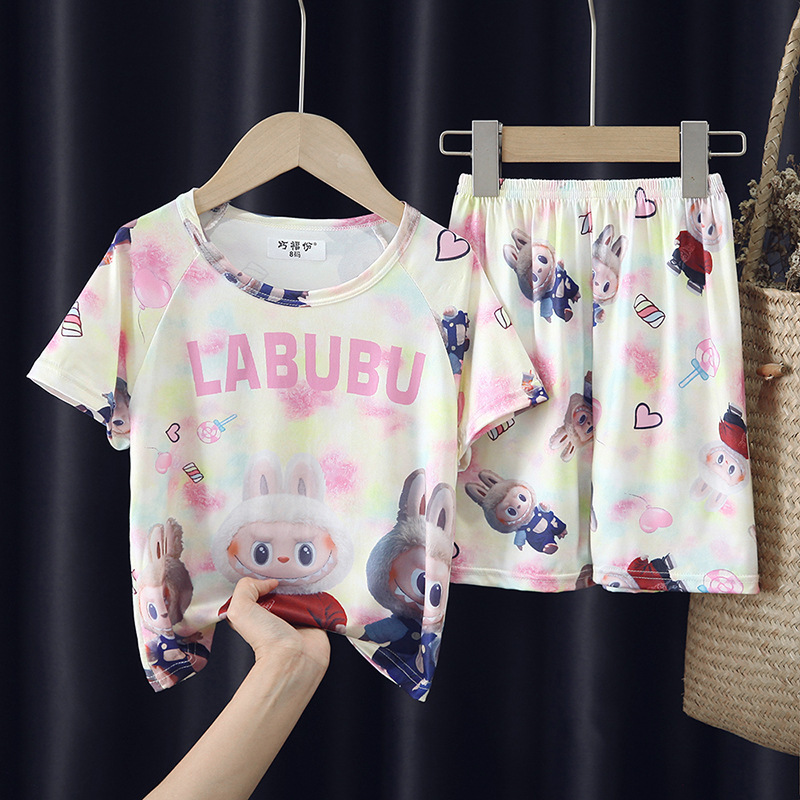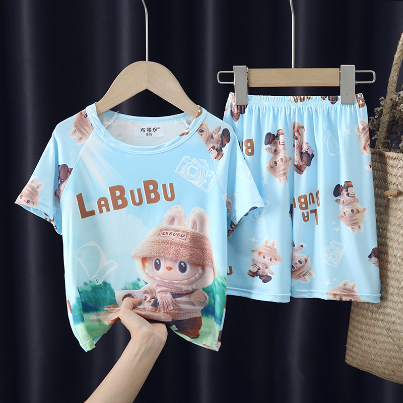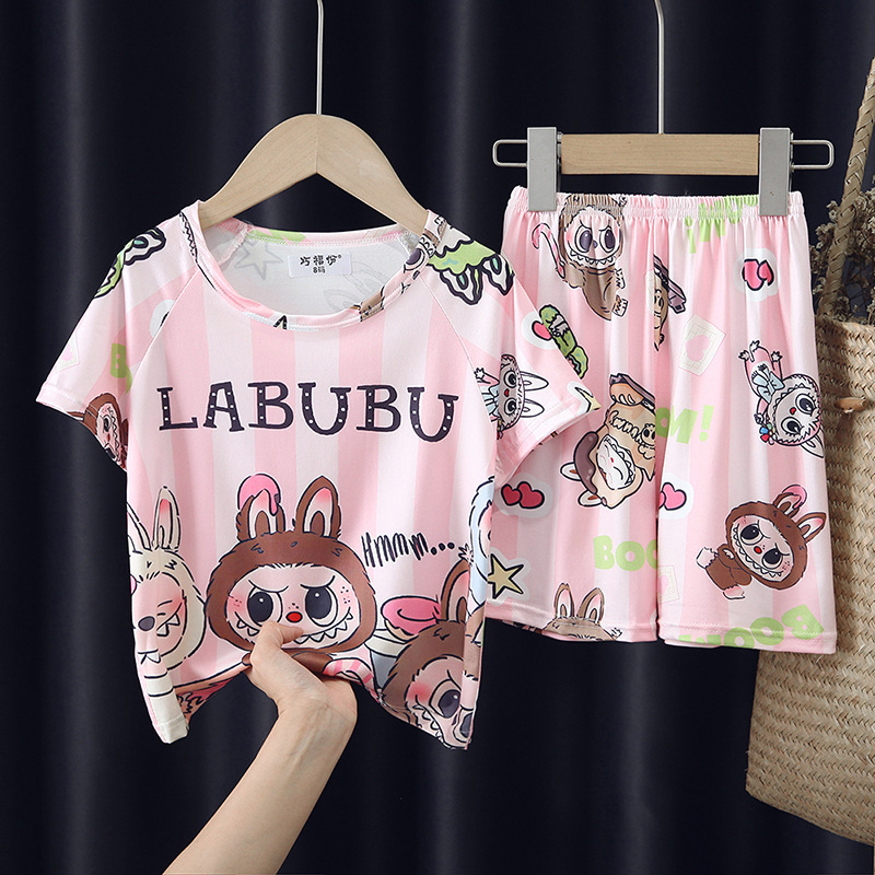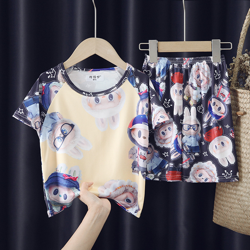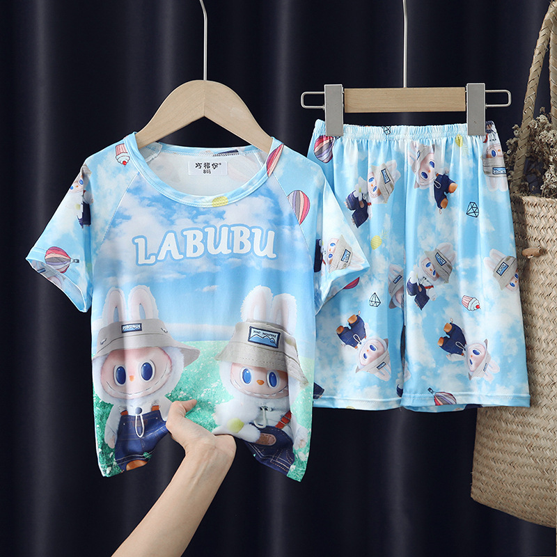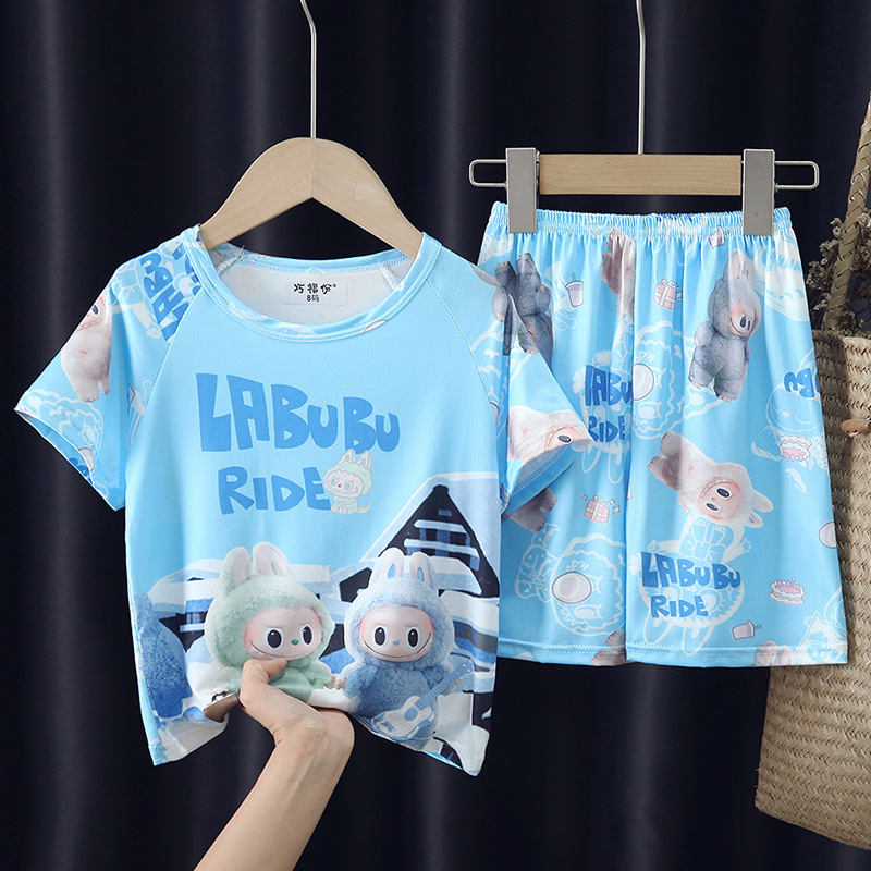 어린이 잠옷 소년 여름 반팔 얇은 어린이와 소녀 만화 여름 학생 에어컨 홈 의류 세트