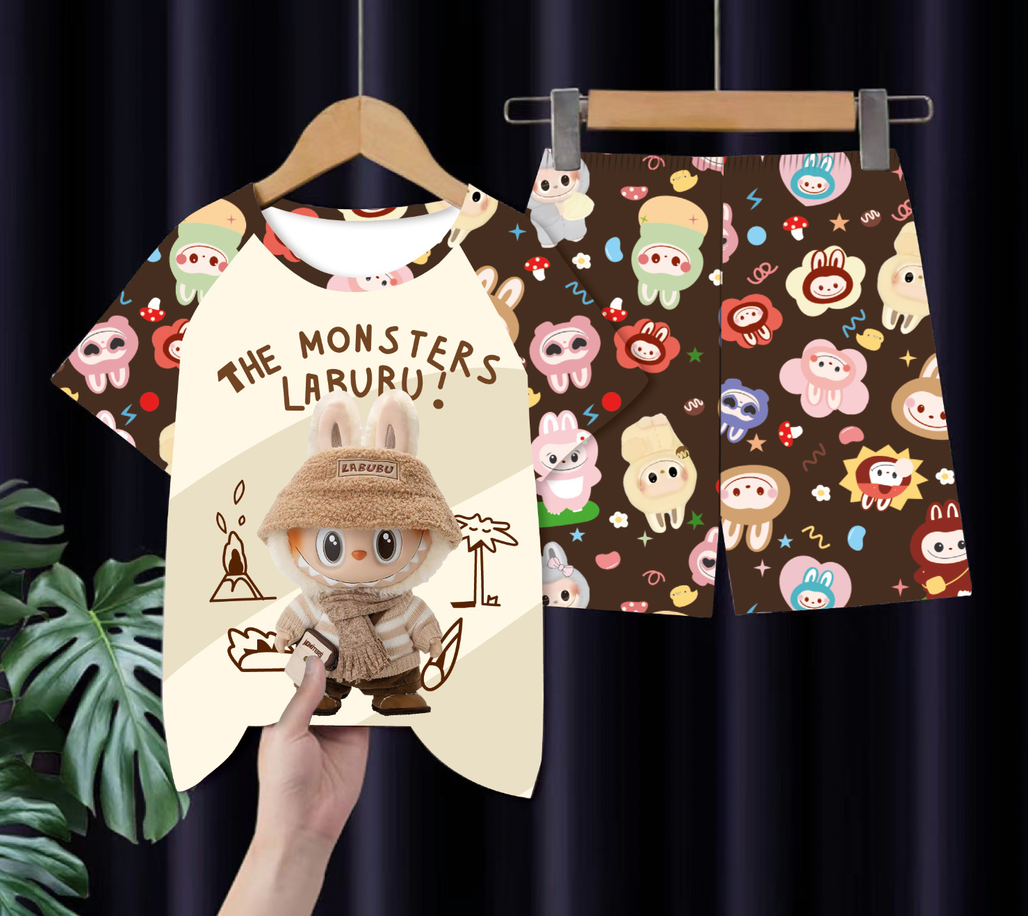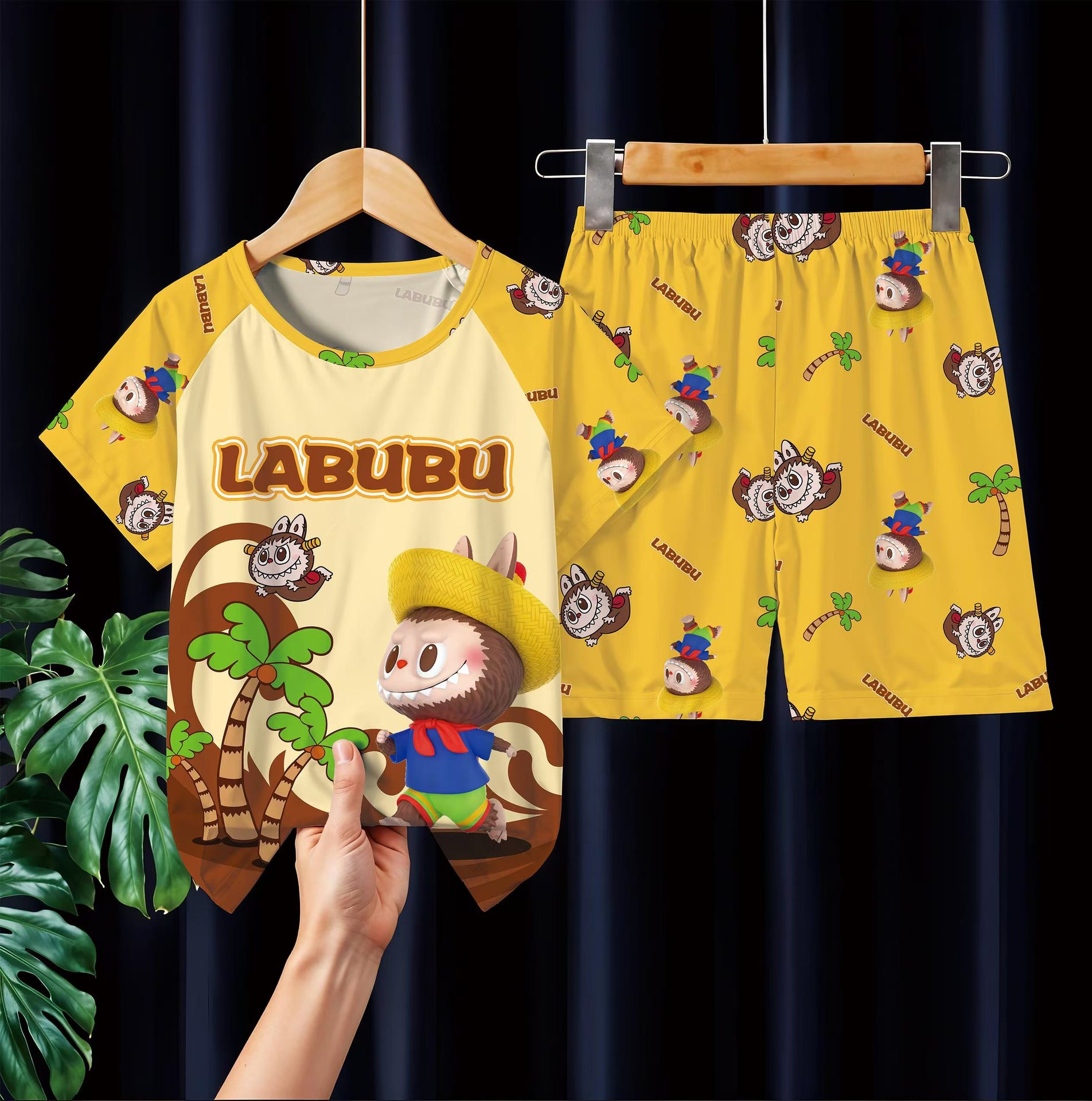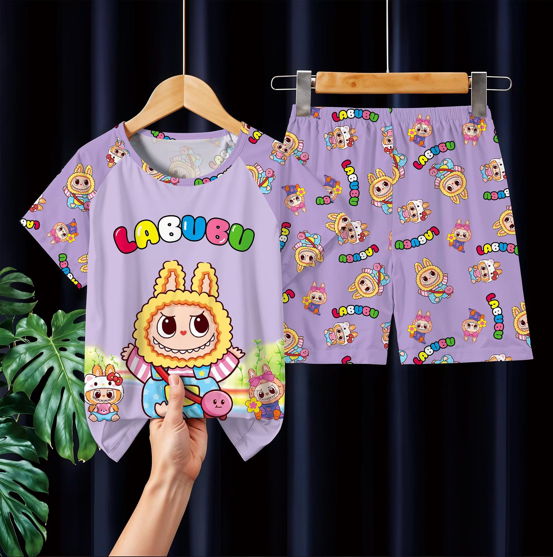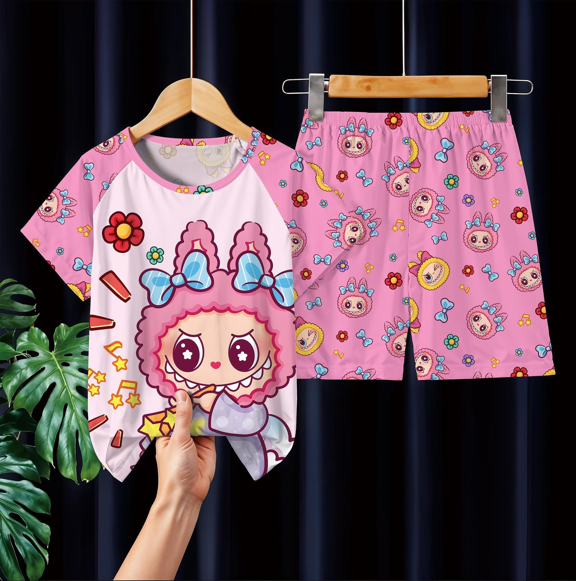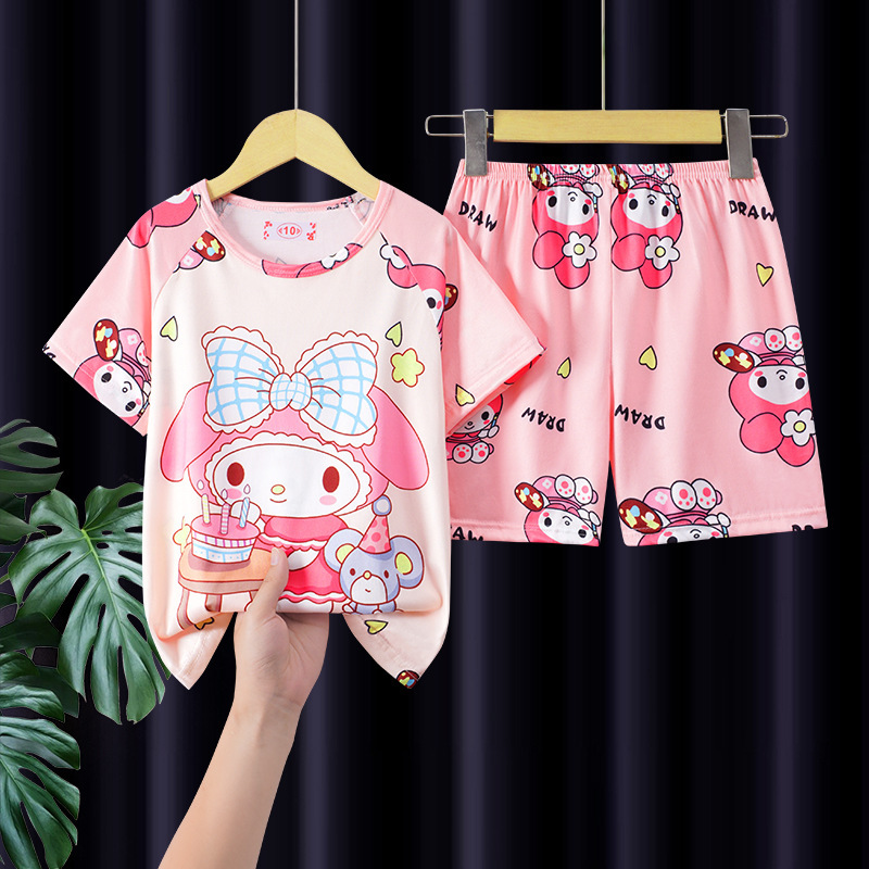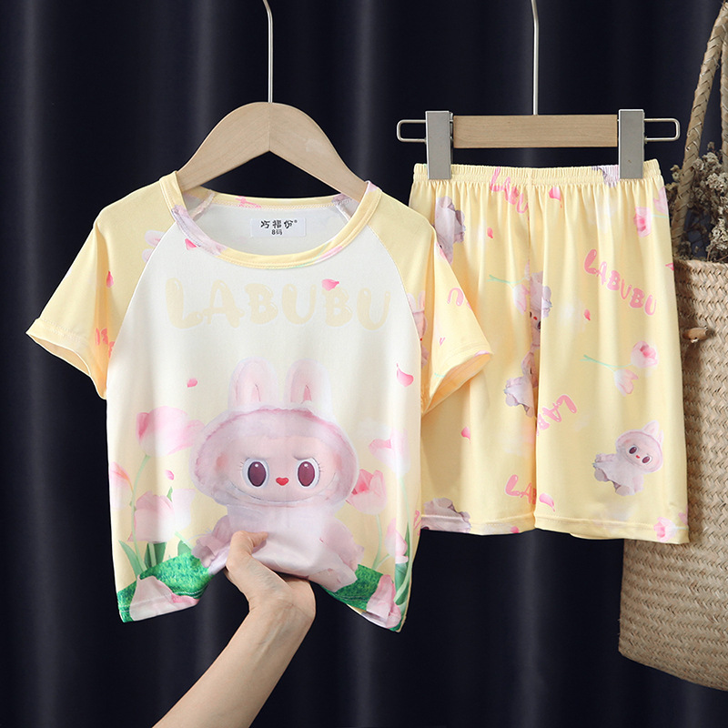 어린이 잠옷 소년 여름 반팔 얇은 어린이와 소녀 만화 여름 학생 에어컨 홈 의류 세트