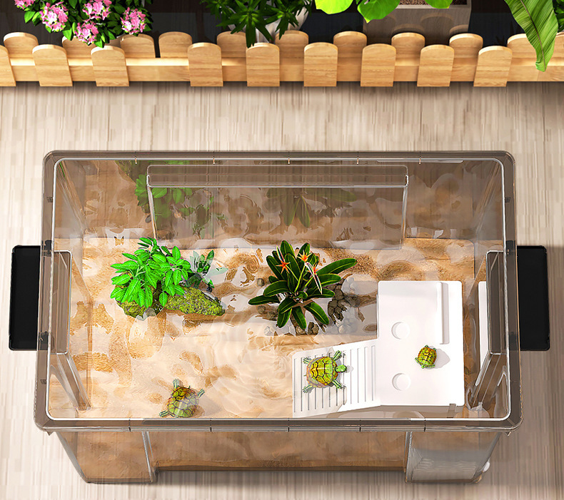 등반 테이블이있는 태양 테이블이있는 초대형 거북이 수유 탱크 가구 생태 커버 탈출 방지 조경 플라스틱 거북이 탱크스토어 가기