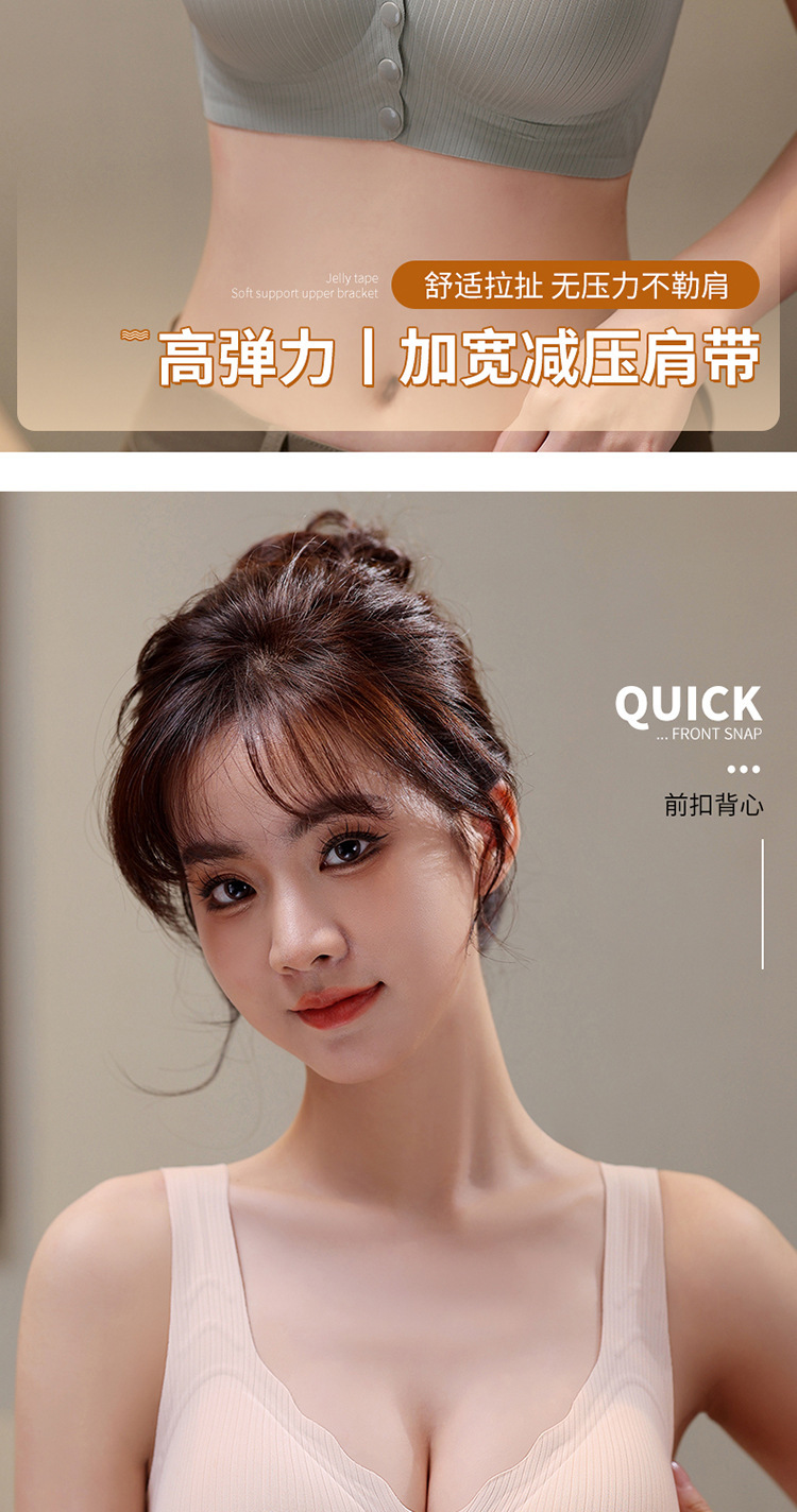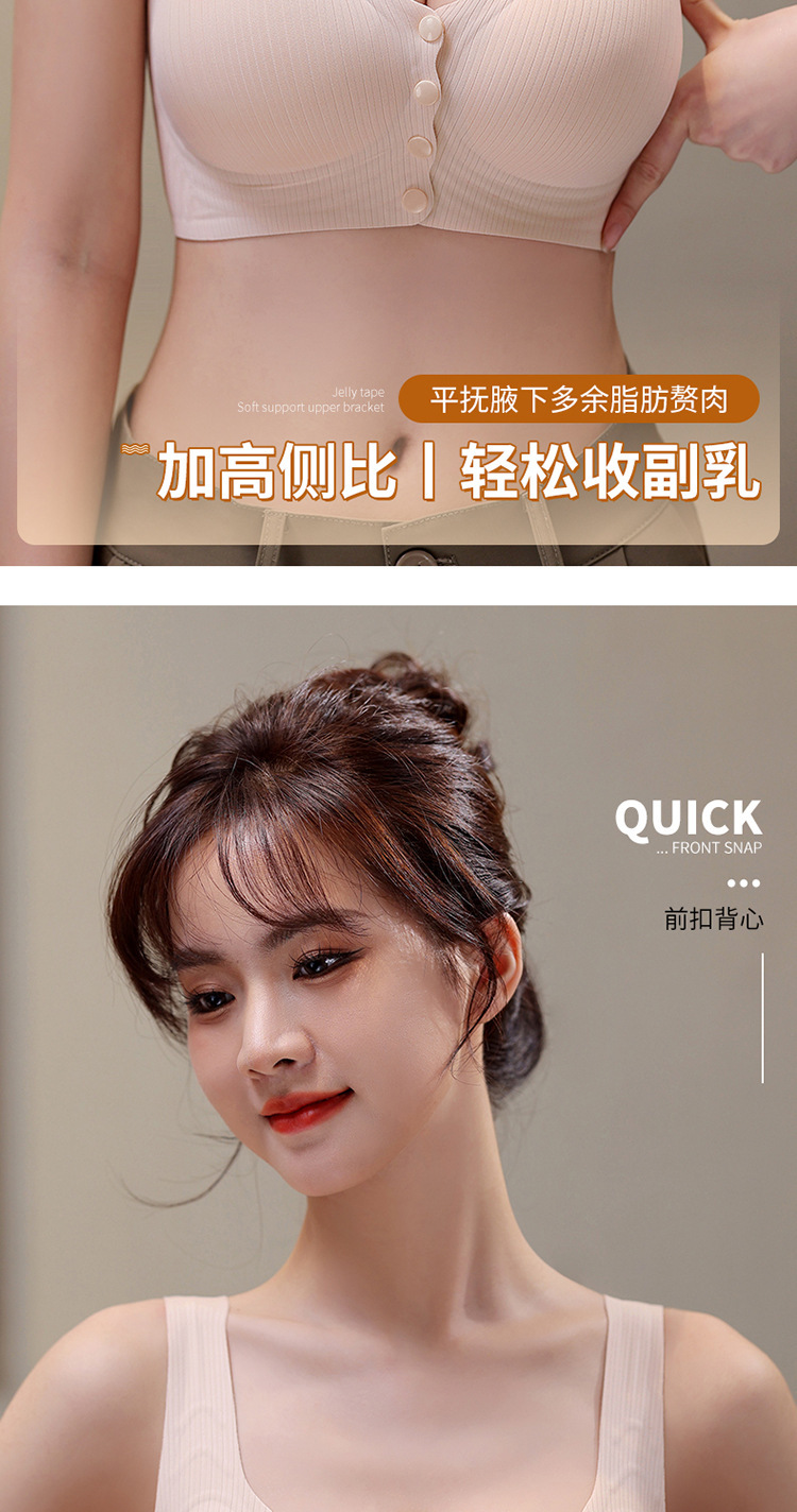 고정 컵 추적없는 속옷 여성용 푸시 업 프론트 버클 프리 스틸 링 편안한 처짐 방지 여름 얇은 아름다운 백브라스토어 가기