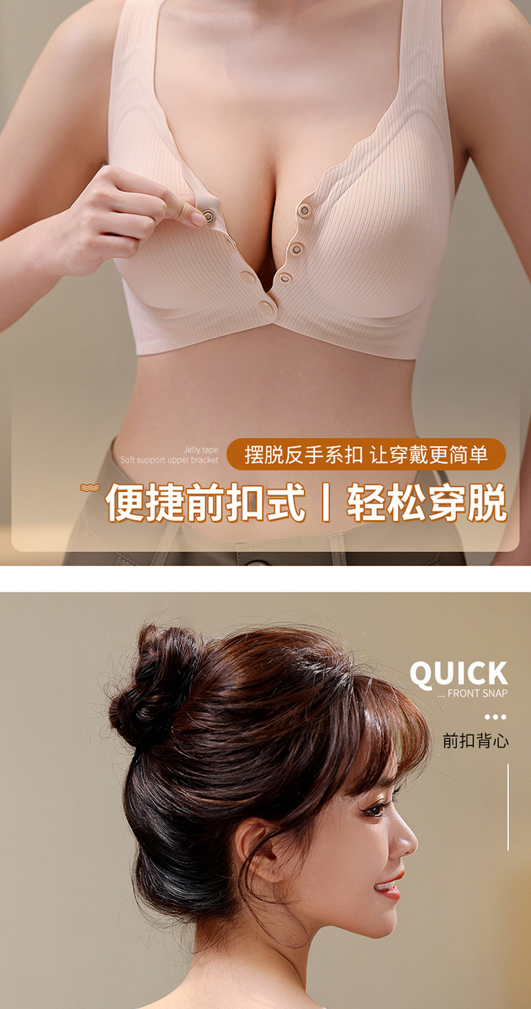고정 컵 추적없는 속옷 여성용 푸시 업 프론트 버클 프리 스틸 링 편안한 처짐 방지 여름 얇은 아름다운 백브라