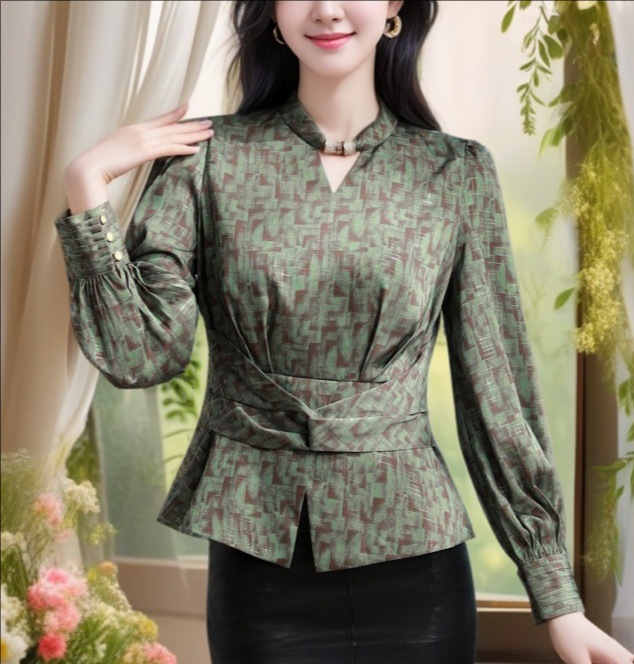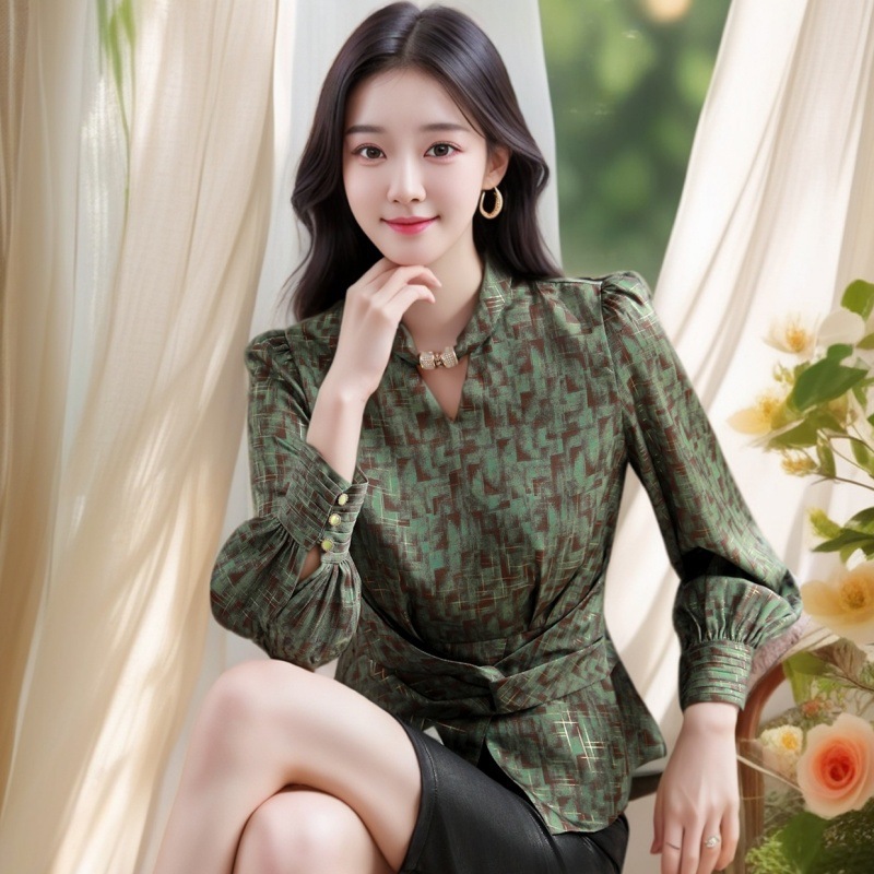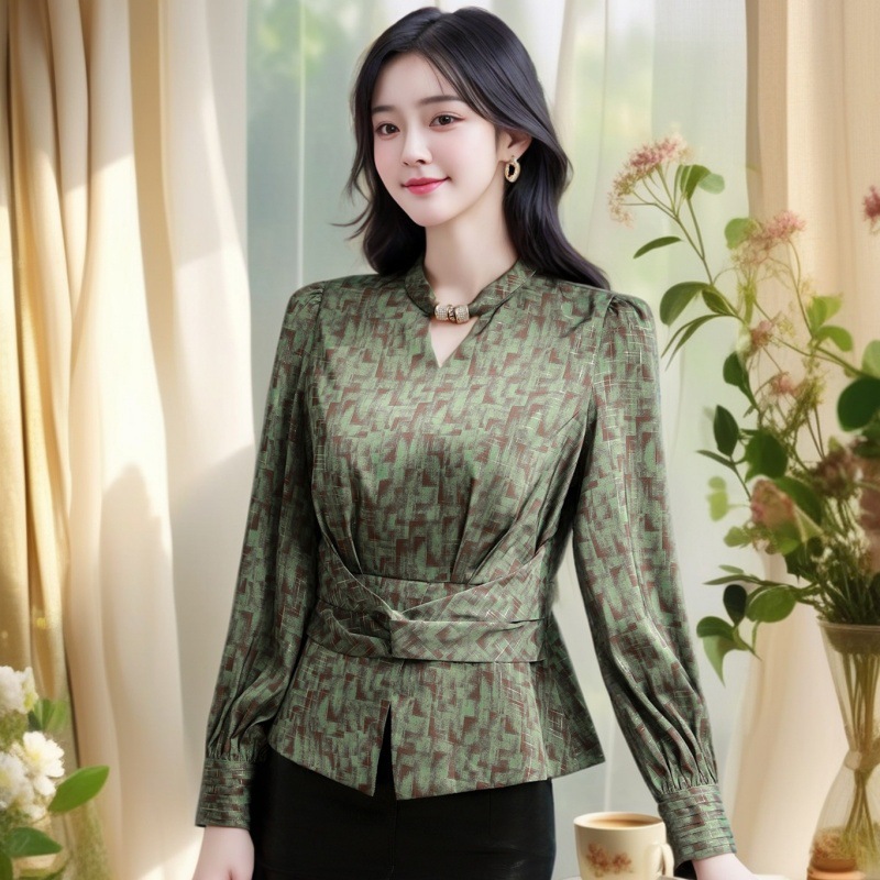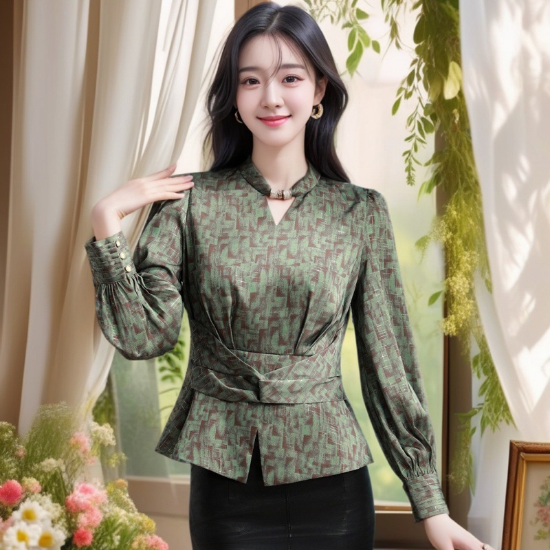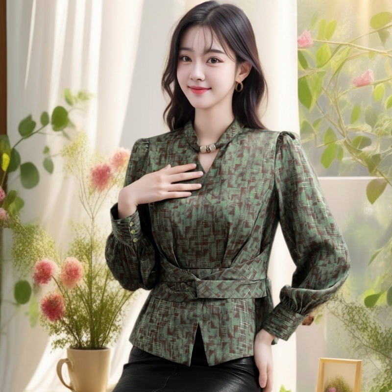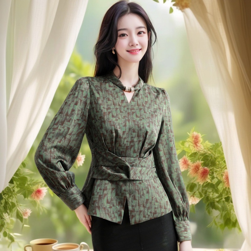 2025 년 봄 새로운 분위기 올해 인기있는 아름다운 작은 셔츠 허리 슬리밍 조커 외국 스타일 셔츠 여성의 조수