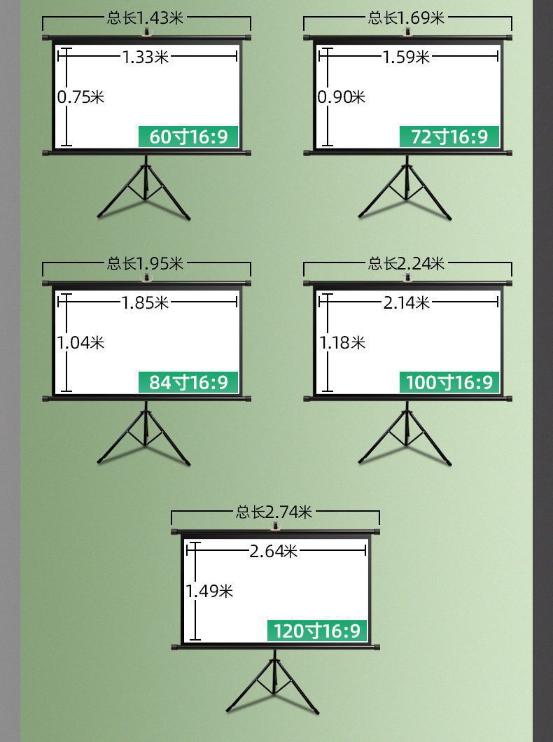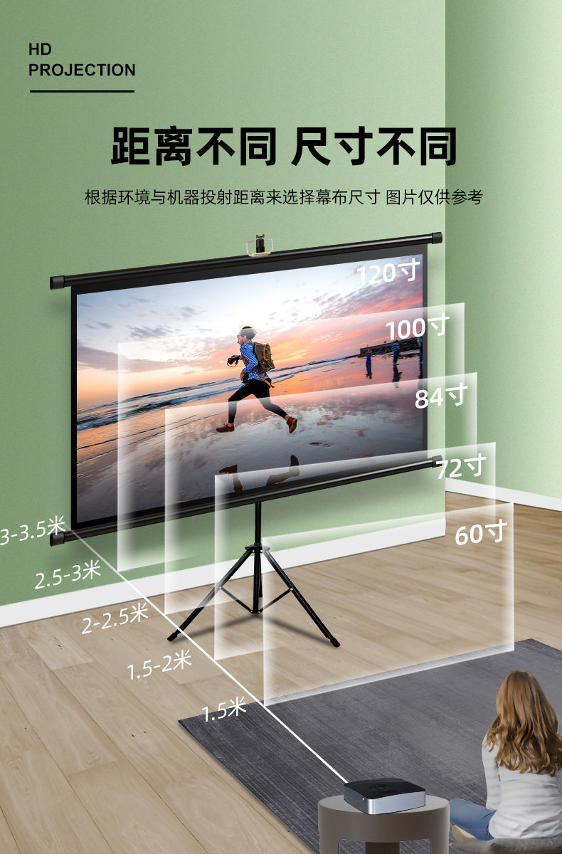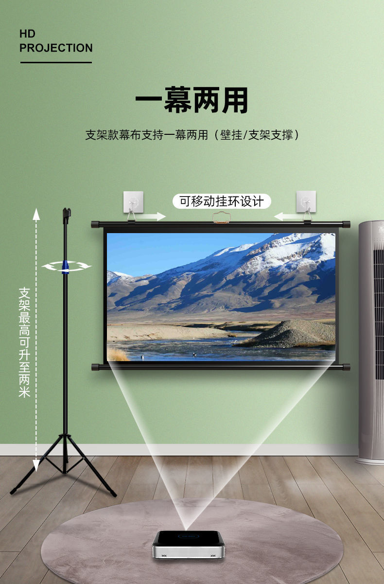 공장 직선 프로젝션 커튼 100 인치 브래킷 프리 브래킷 로드 야외 모바일 프로젝터 커튼
