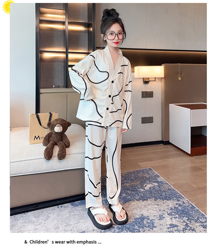 소녀의 집 옷 봄과 가을 새로운 긴 소매 소녀 잠옷 세트 느슨한 대형 어린이 에어컨 옷 어린이 잠옷