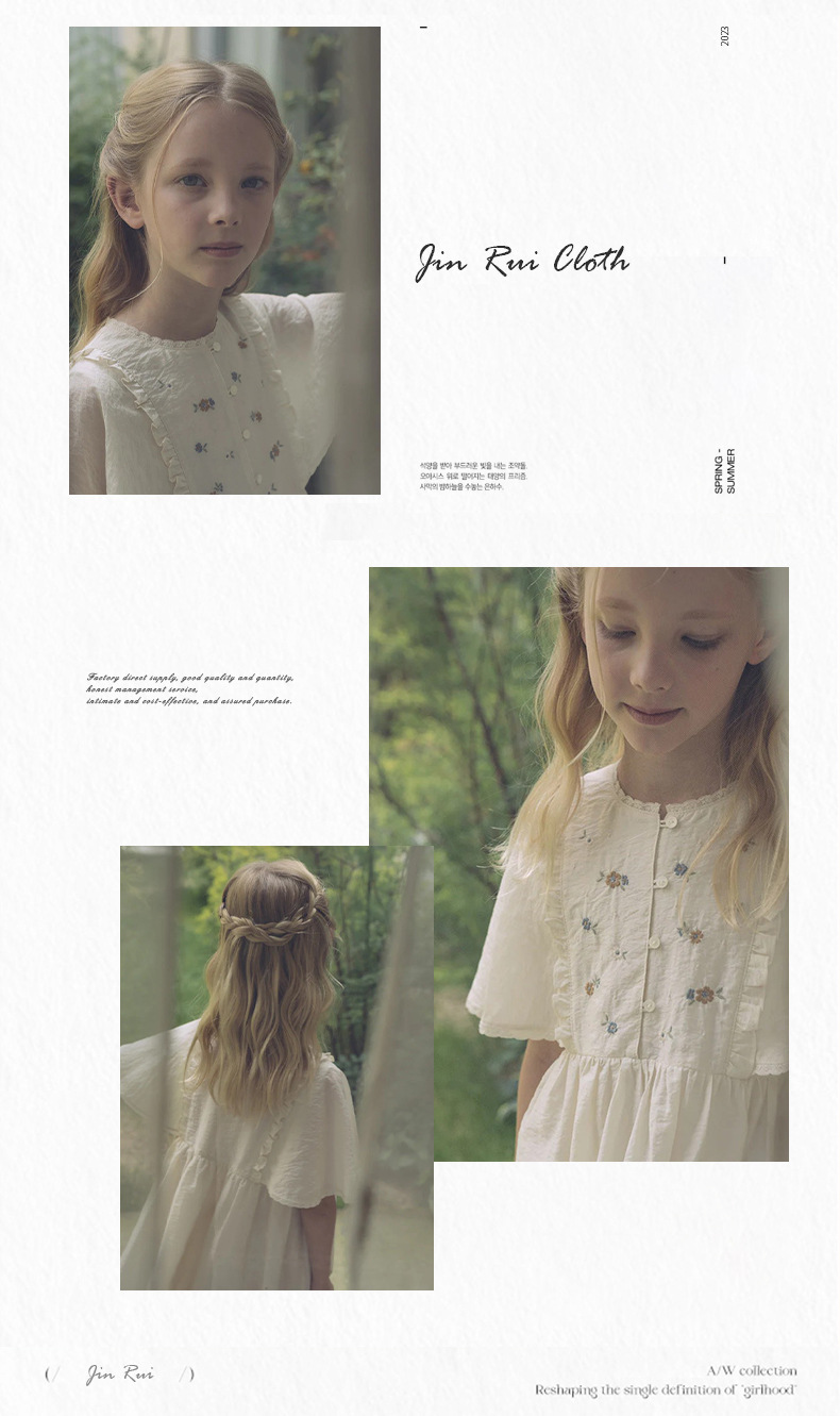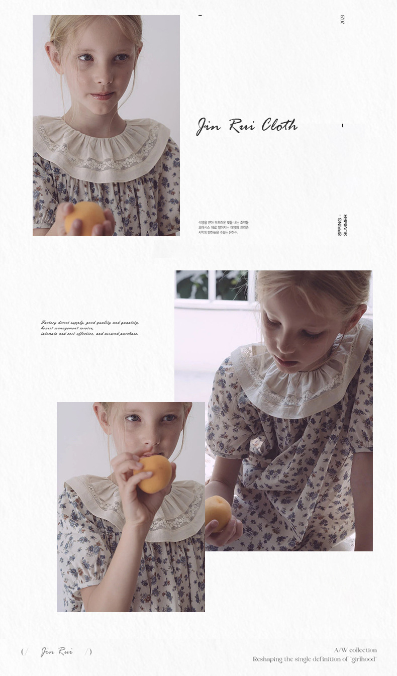 재고 있음 2025 여름 LOU 여아 스커트 반팔 워싱 코튼 텐셀 코튼 프린트 드레스 이너웨어 아우터 컬렉션 1