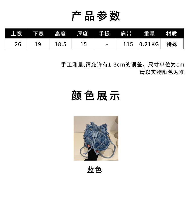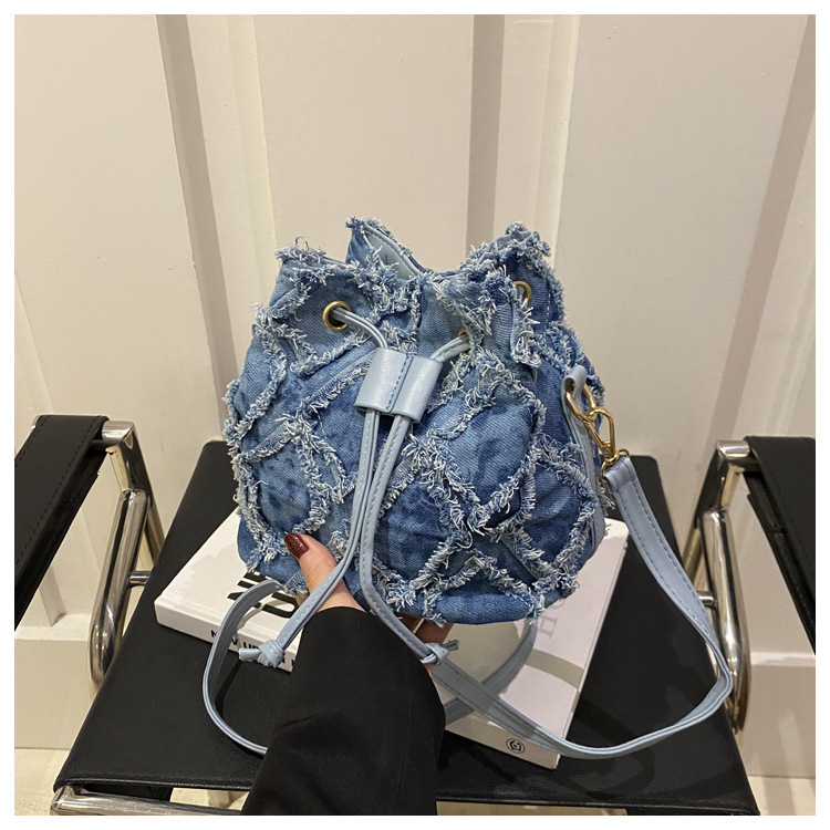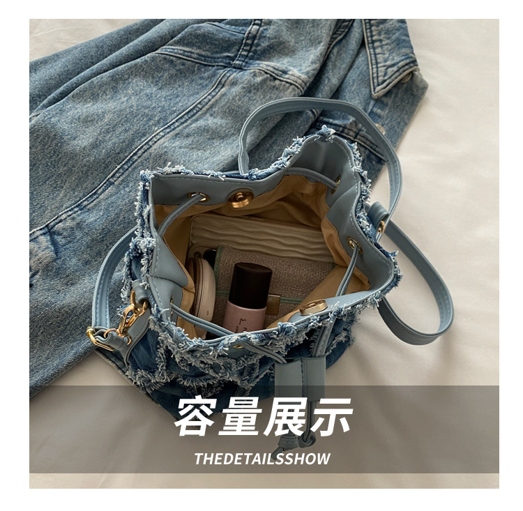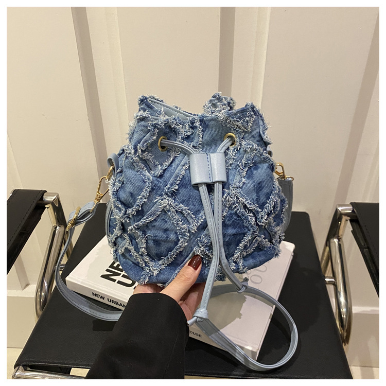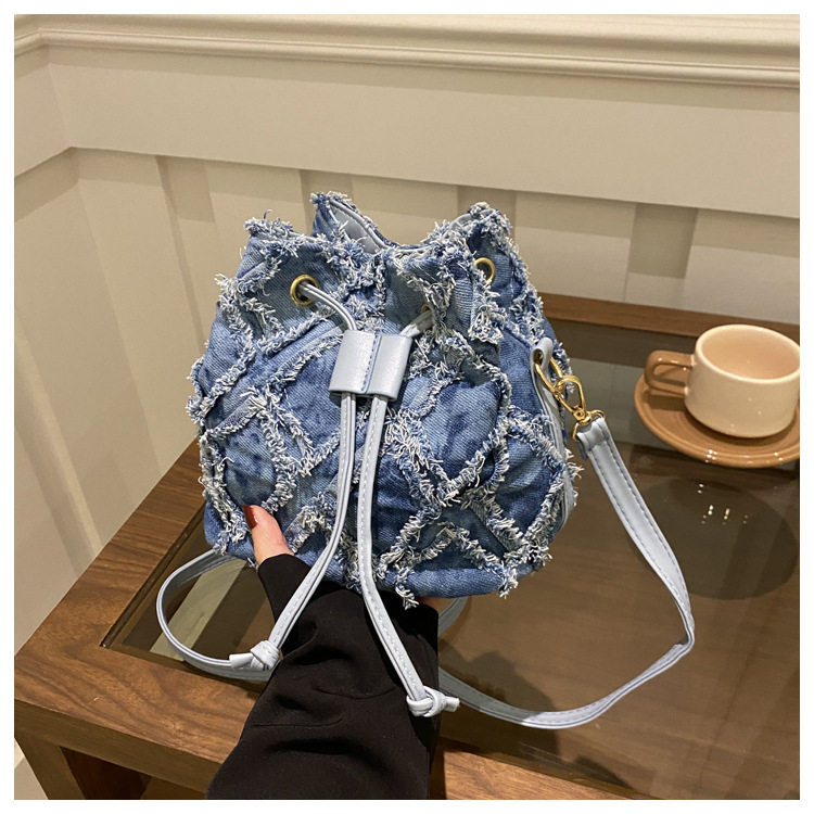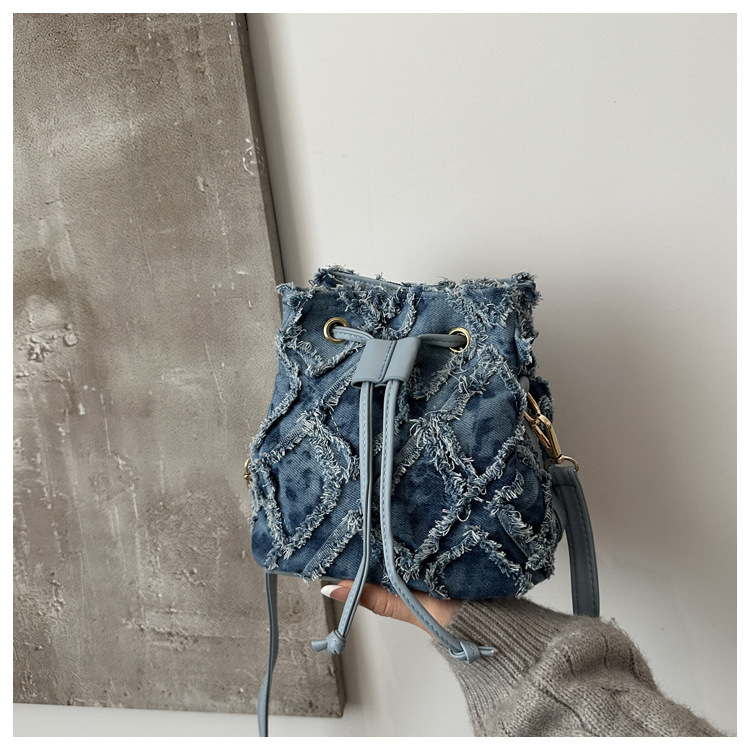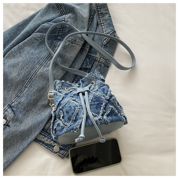 2025 마름모꼴 데님 스트랩 새로운 패션 세련된 여성의 한국 간단한 슬렁 숄더버킷 백스토어 가기